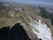 Im Aufstieg überholten mich 2 schnelle Kletterer in den oberen Felsstufen vom Gasilltal. Ich sah sie dann über den Ostgrat (Schwierigkeitsgrat III nach UIAA) zur Parseier Spitze frei klettern. Sie überholten mich ein zweites Mal kurz vor der Parseier Scharte. Nach mir folgte noch ein Duo, die den AHW liefen. Bei der Eisrinne kam mir ein Pärchen entgegen. Bei der Parseier Scharte begegneten mir 4 Personen. Mehr waren heute auf dem AHW nicht unterwegs. Beim P 2889 kam mir ein Berggänger entgegen, der über Lange Pleis zum Dawinkopf stieg.