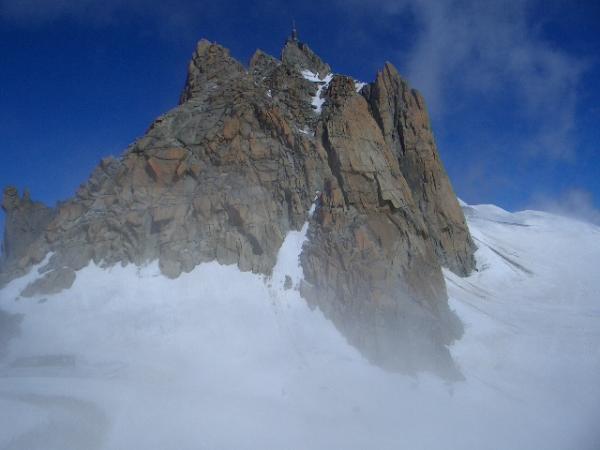 Von Cosmiquehütte nach kurzer Gletscherquerung via Cosmiquegrat zur Aiguille du Midi (im Fels bis IV, eine Stelle A0)