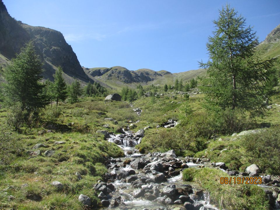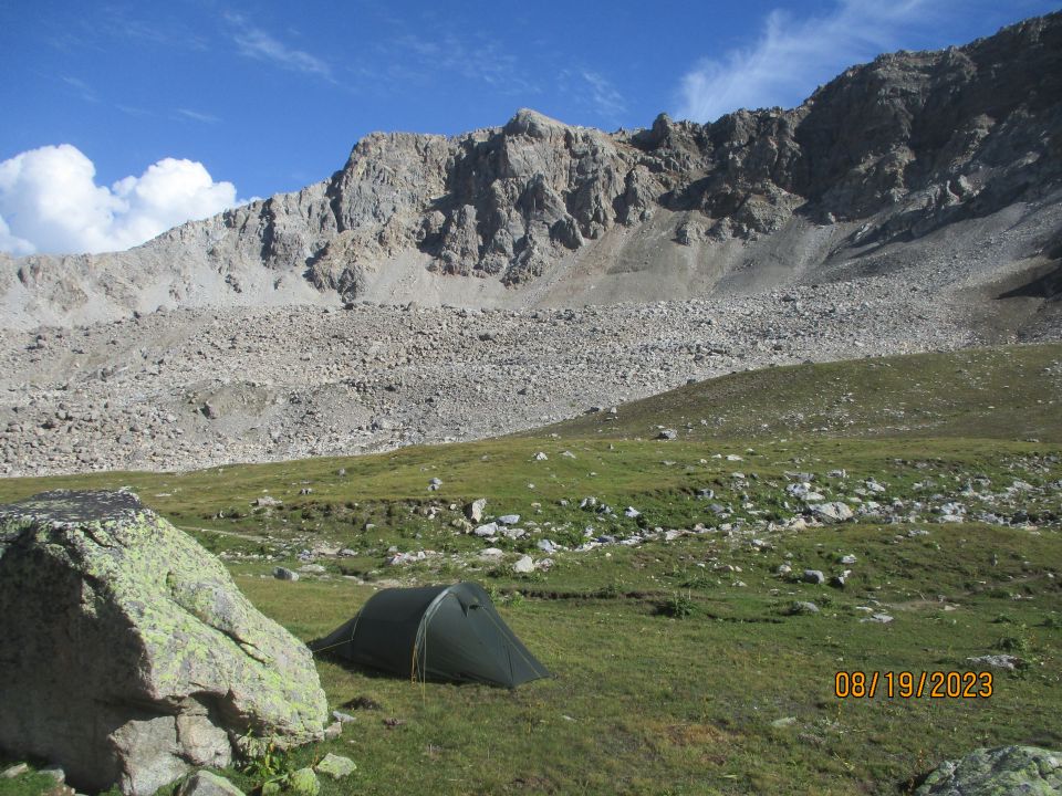 Tag 1 meiner Zweitagestour zum Piz Ot. Ich bin in Spinas gestartet und durch die Valletta da Bever bis zum P. 2426 aufgestiegen. Ab dort wie in der hinterlegten Routenbeschreibung zum Gipfel P. 2855 und von dort aus weglos dem Grat zu P. 2882 weitergegangen. Dieser wird bei map.geo.admin als Pizzatsch bezeichnet, wohingegen mein SAC-Führer von 1986 diesen als Padella-Hauptgipfel benennt.