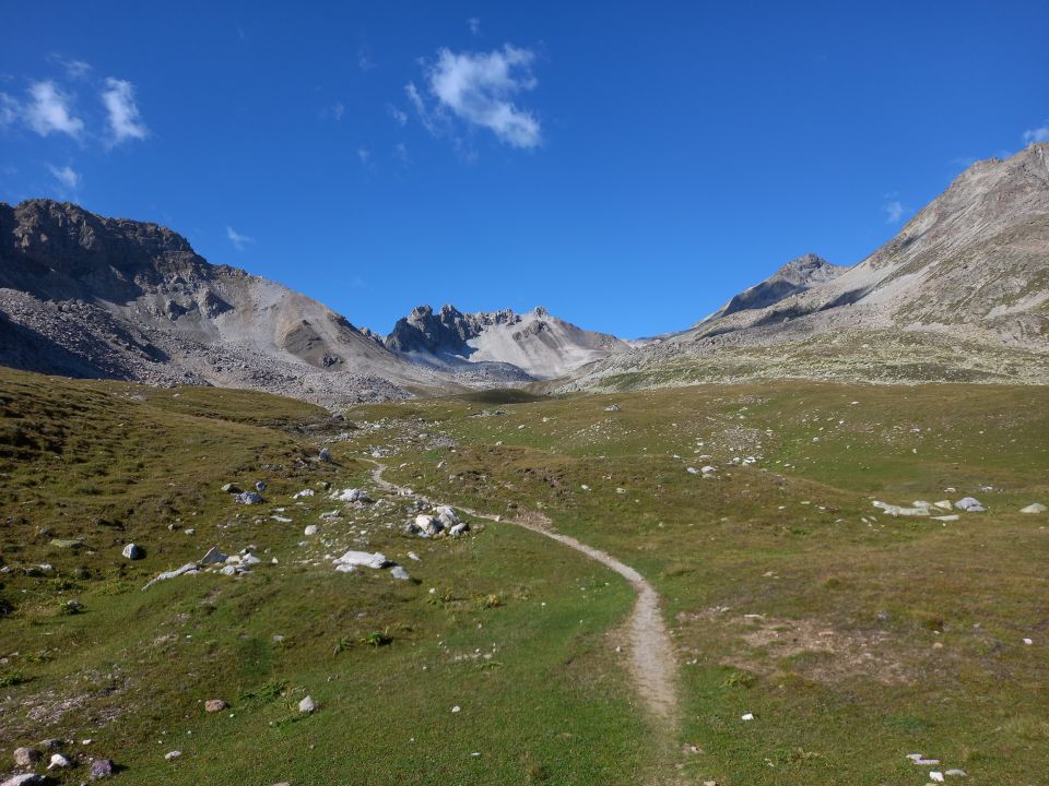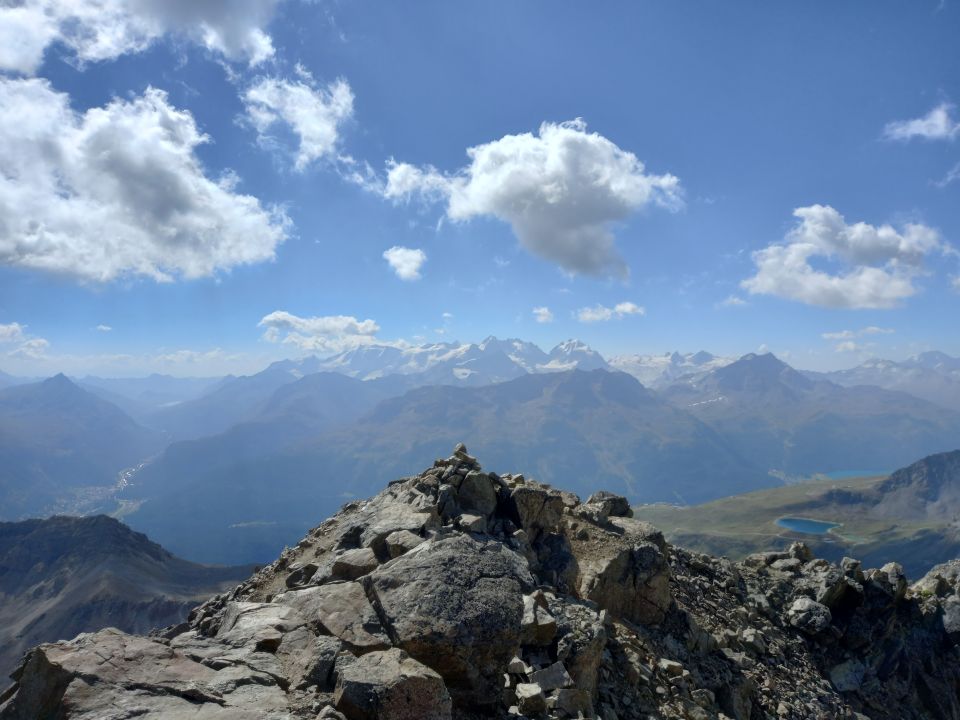 Mit der überfüllten RhB in der 3. Klasse (FA mit Holzbänken und Rückenlehnen die nur halbhoch sind ...) von Chur nach Spinas, Start um 8:45, auf anfänglich recht steilem, aber gutem Weg hoch durch den angenehm schattigen Wald ins Valletta da Bever. Im Valletta da Bever ein paar Rüfen, welche den Wanderweg als Abfluss missbraucht haben, daher stellenweise etwas holprig, ab Margunin dann alles in der Sonne im eigentlichen Valletta. Bei Pkt. 2582 die Abkürzung nicht verpassen (nach dem grossen Boulder), gemäss Landeskarte reicht die Wegspur nicht bis zum offiziellen wbw Gipfelweg, man findet den Weg jedoch problemlos dank Steinmännchen- Der Gipfelweg ist schon fast etwas exzessiv markiert :-), stellenweise etwas mühsam über Blockschutt (auf dem Plateau auf 3000m), teils mit Ketten und Geländer gesichert, teils ohne (z.T. Stellen an denen man bös abstürzen könnte), T4 Gelände halt, aber spannend zu begehen. Fantastische Sicht aufs Berninamassiv. Rückzug auf gleicher Route und dann über Fuorcla Valletta - Trais Fluors - Munt da la Bês-cha - Las Costas nach Marguns