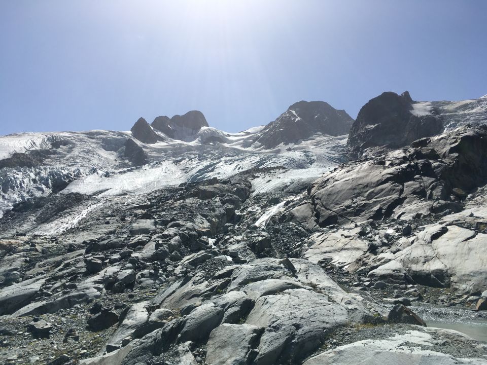 Panorama Wanderung zur Chamanna Coaz und weiter zum Einstieg Vadret da Roseg, T3+. Start Bergstation Murtel 8.35 Uhr, 16 Grad, schönstes Sommerwetter. Erste Bahn 8.25, CHF 23 Halbtax retour. Piste hoch bis Fuorcla Surlej, dann runter auf markiertem Wanderweg, dreimal musste mühsam Bach überquert werden, neue Brücken und runter und wieder hoch, neue Teilstrecken, Ab Punkt 2619 entspanntes Wandern mit tollen Ausblicken in die Gletscherberge. Bin dann nach der Hütte zum Einstieg Gletscher für Hochtouren Glüschaint und Sella, die Gletscher sind unglaublich zurückgegangen. Die Hütte ist ja geschlossen und für Hochtouren im Gebiet muss man schon campieren! Rückweg auf gleicher Strecke.
