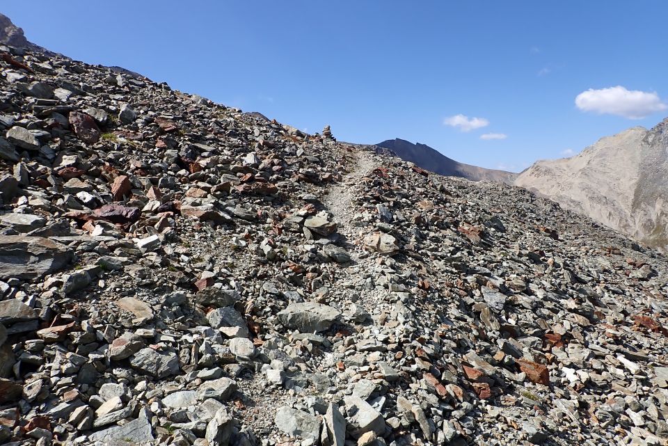 Mit dem prognostizierten Regen, wird der sehr Steile Aufstieg in der Nordflanke zum Grat vermutlich rutschig werden.