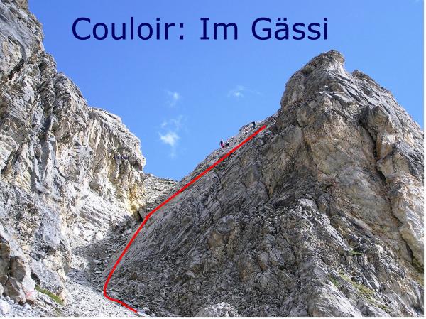 Schwierigkeitsgrad: T3+ gemäss neuer SAC-Wanderskala. Die Schlüsselstelle ist das Gässi, ein kurzes Couloir, welches zuerst duch Geröll führt. In der Mitte wird dieses seitlich durch gut gestuften Fels verlassen. Der Schnee von letzter Woche ist mehr oder weniger wieder weg. Die Route ist über das Schöllijoch - Inners Barrhorn - Pt. 3488 bis auf den Gipfel des Üsseren Barrhorns durchgehend rot-weiss-rot markiert und wird von vielen Steinmännern flankiert.
