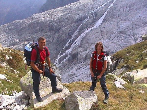 Deutschsprachige Bergsteiger trifft man hier nicht viele. Wer sich hier ins Val Genova verirrt, hat meist schon viele Stunden Autofahrt hinter sich. Diese Mühe ist aber nicht vergeblich. Schon Julius Payer, Erstbesteiger des Adamello und grosser Erschliesser am Ortler und in der Adamellogruppe, nannte das Val Genova "das erhabendste und wildeste österreichische Alpental". Im 19. Jahrhundert reichten die Grenzen der k.u.k. Monarchie weit nach Süden bis ins heutige Trentino. Bis etwa 15 Minuten vor das Rif. Bedole, im hintersten Val Genova, können wir mit dem Auto fahren. Dort kann man übernachten und vorzüglich speisen. Am nächsten Tag ist der Sentiero Matarot die Eintrittskarte zu einer langen, eindrucksvollen Runde über den Adamellogipfel zurück ins Val Genova. Diese Strada überwindet die Steilabstürze aus dem Talschluss zum Lobbiagletscher hinauf. Bei Nässe oder Neuschnee ist dieser Sentiero ein ernstes Unternehmen. Auf den vom Gletscher glattgeschliffenen Felsplatten ist schon bei trockenem Wetter vorsichtiges Steigen angesagt. Seilsicherungen sind nur teilweise vorhanden. Das Rifugio Lobbia Alta wird derzeit grosszügig umgebaut und wir nächtigen daher am Passo, in der recht gemütlichen, aus Holz erbauten Ersatzhütte. Über der Hütte fällt sofort der Gipfel der Cresta della Croce auf, der ein behäbiges, aus Stein gemeiseltes Gipfelkreuz trägt. Am besten ist es, wenn man eine eventuell steile Spur, die hinter der Hütte den Gletscher hochzieht, in einem weiten Linksbogen etwas ausgeht und so bequemer und ungefährlicher zum Einstieg an der Cresta della Croce gelangt. Hier hängt eine etwas zu kurze Reepschnur herunter und erleichtert den Aufstieg zum Grat über eine kurze Griff- und Trittarme Verschneidung. Der weitere Anstieg über den Blockgrat aus fantastischen, glitzernden Granitblöcken ist wenig schwierig, traumhaft schön und zusätzlich rot markiert. Wer zur berühmten Cannone dell Adamello gelangen will, muss über den weiterführenden Grat, zunehmend schärfer und luftiger klettern. Es lohnt sich aber sehr, dieses Relikt aus dem Ersten Weltkrieg, welches heute unvorstellbar auf dem ausgesetzten Felsgrat steht, zu besichtigen. Der Abstieg erfolgt auf dem Anstiegsweg zurück zur Hütte.