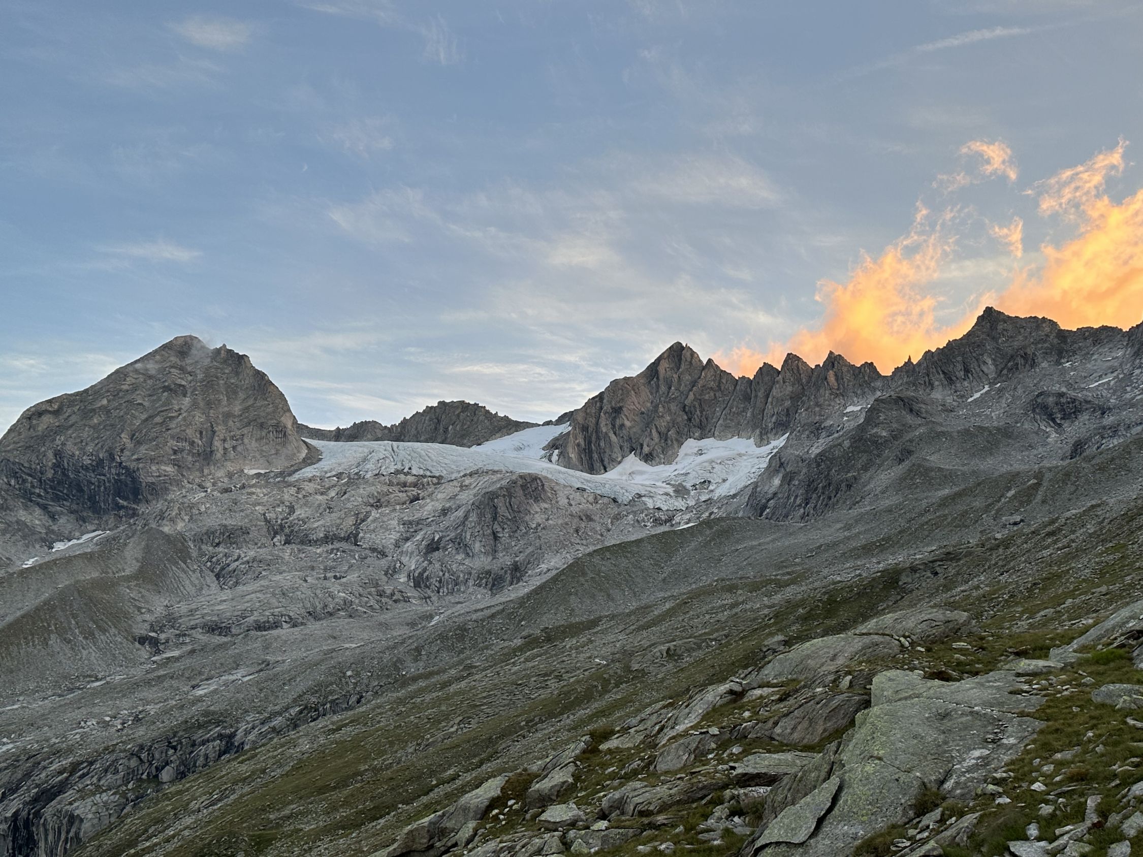 Übergang auf den Gletscher über den alten Weg stark Steinschlag gefährdet, neuer Weg weiter oben, westlich, deutlich sicherer.