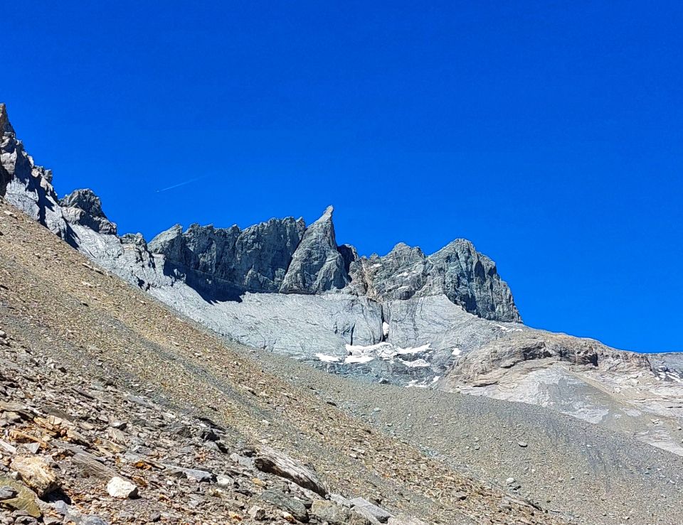 Der Aufstieg über den Mittelgrat ist grösstenteis schneefrei und gut ohne Steigeisen machbar. Abstieg übers Tschepband heute noch mit Restschnee und sehr nass und entsprechend rutschig in der Flanke, ab der Überschneidung bis zum Tschep dann gut und problemlos zu gehen.