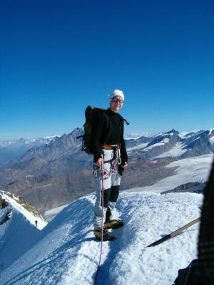 Normalweg vom Kleinen Matterhorn über Breithornpass richtung Zwillingsjoch und südwestflanke zum Gipfel ws- Firn 35-50 grad