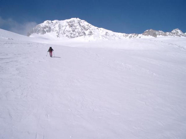 Ab 2500m tragfähiger Schneedeckel. Gletscher sehr gut eingeschneit. Schlussstück des Gipfelgrates erforderte Stufenschlagen.