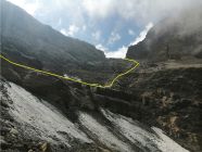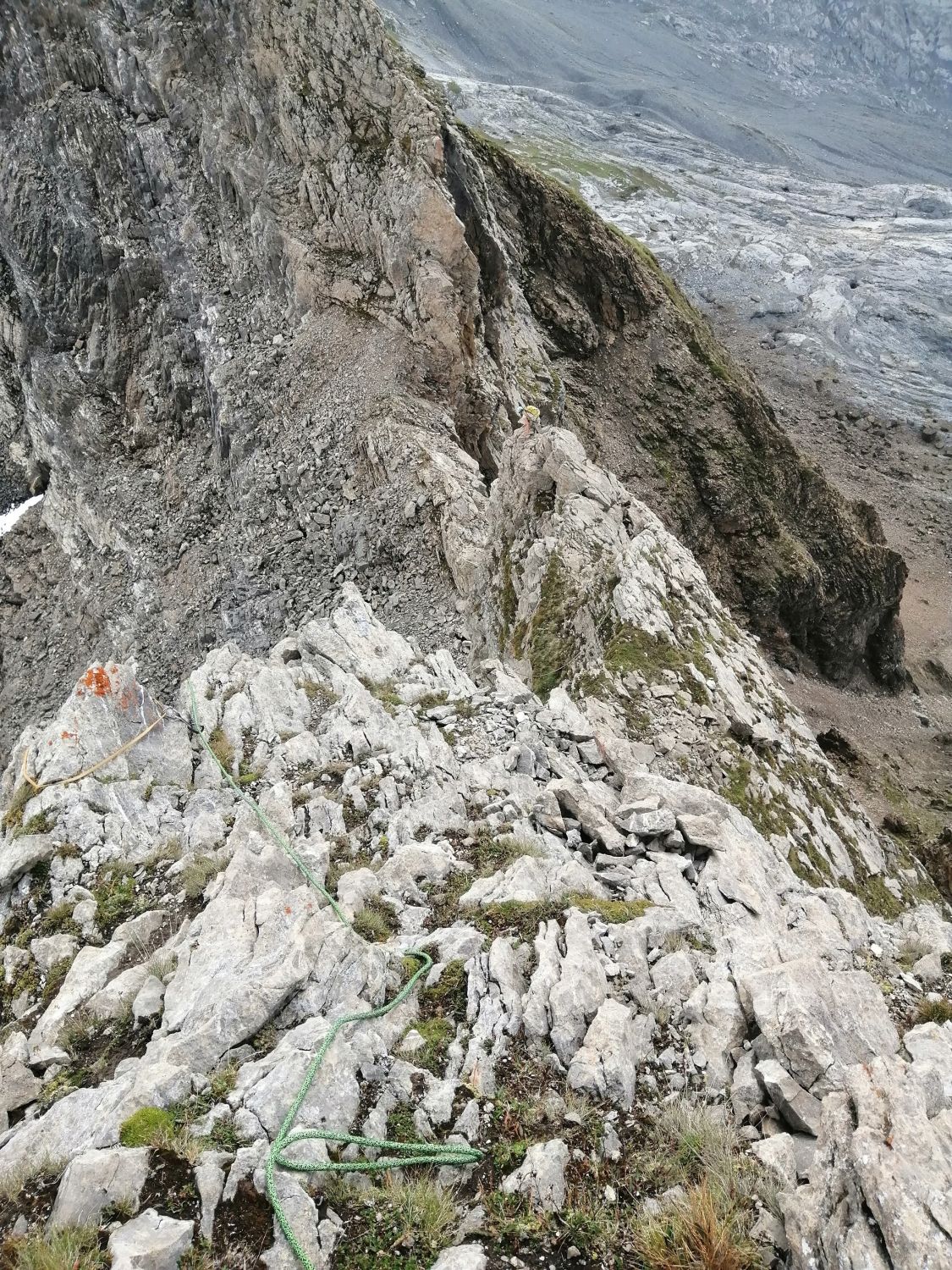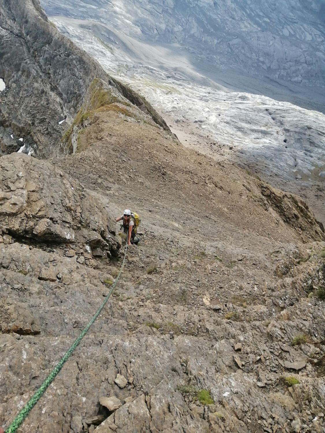 Alles schneefrei und trocken. Gletscherrest total blank - Steigeisen Pflicht. Auf dem Gletscherrest vorsicht vor Steinschlag (auf dem Eis abrutschende Steine und Blöcke, vor allem am westlichen Gletscherrand alle paar Minuten kleinere Abgänge - dem kann aber ausgewichen werden, wenn man sich östlich hält.