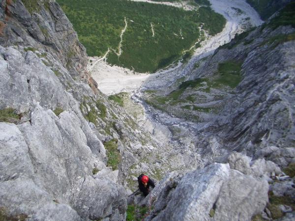 Vom Parkplatz der Lünerseebahn kurz nach Brand Fußanstieg ca 40 min., 300 Hm bis zum Einstieg; Kletterei von 11-12 SL, ca. 230 m, Schwierigkeit 4b; Abstieg über Schutt und Schrofen zum Lüner See und auf gutem Weg retour zum Einstieg und weiter zum Parkplatz.