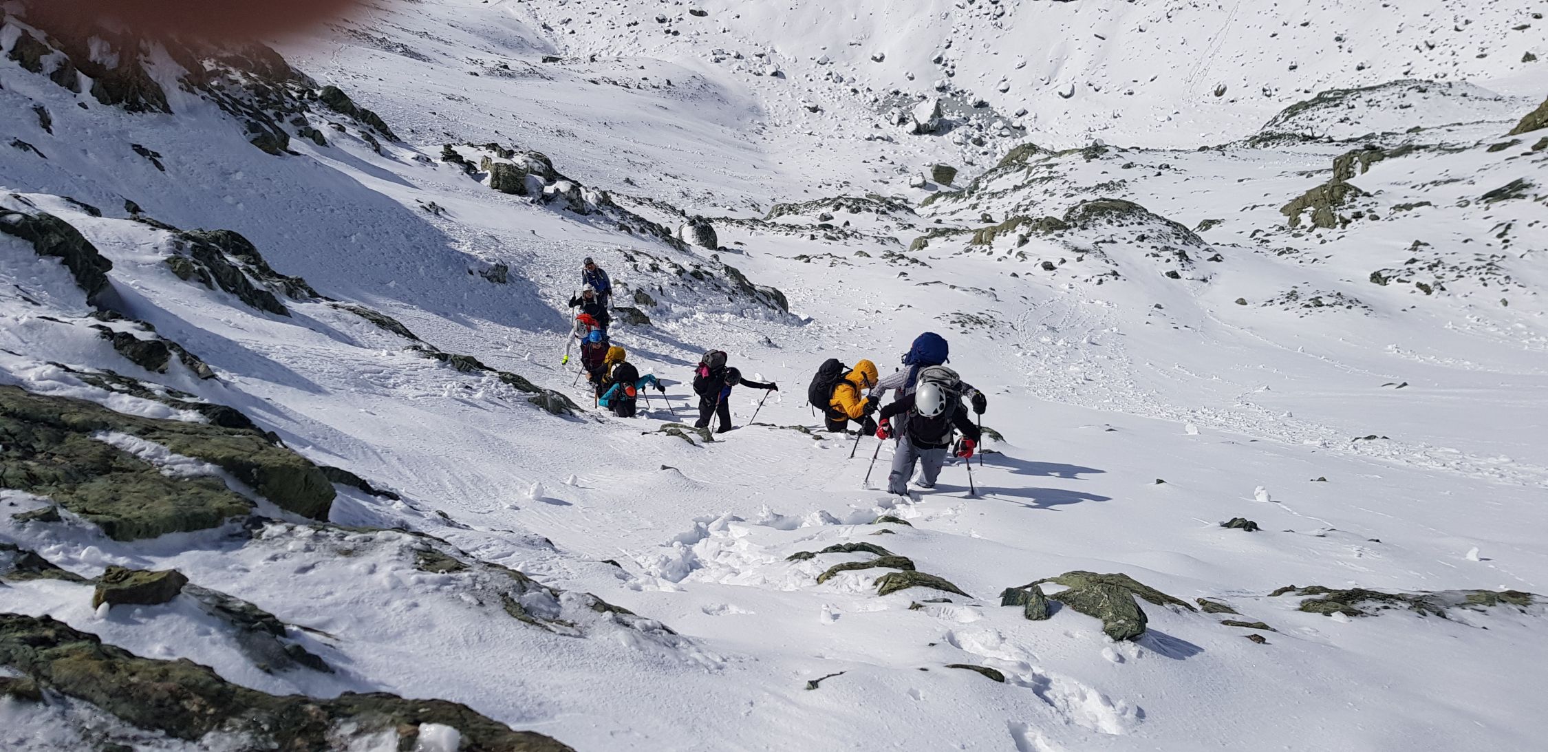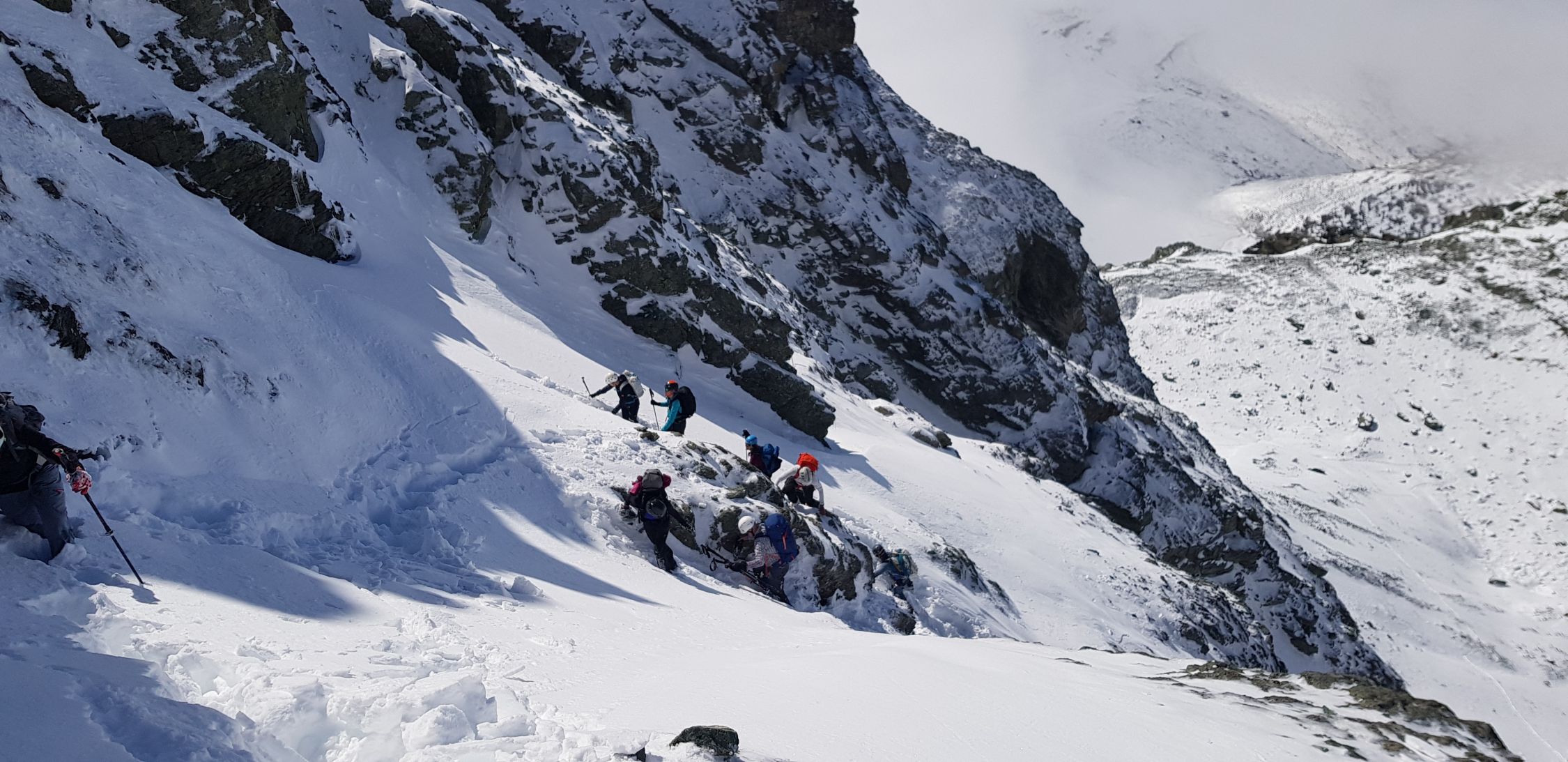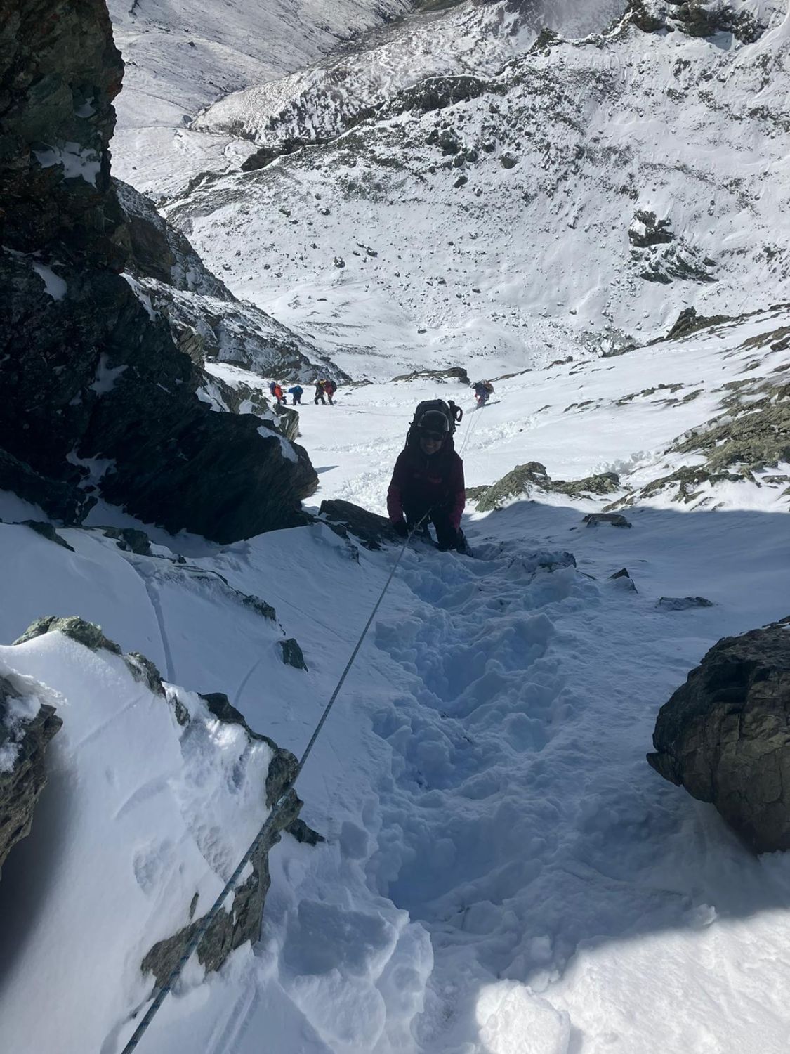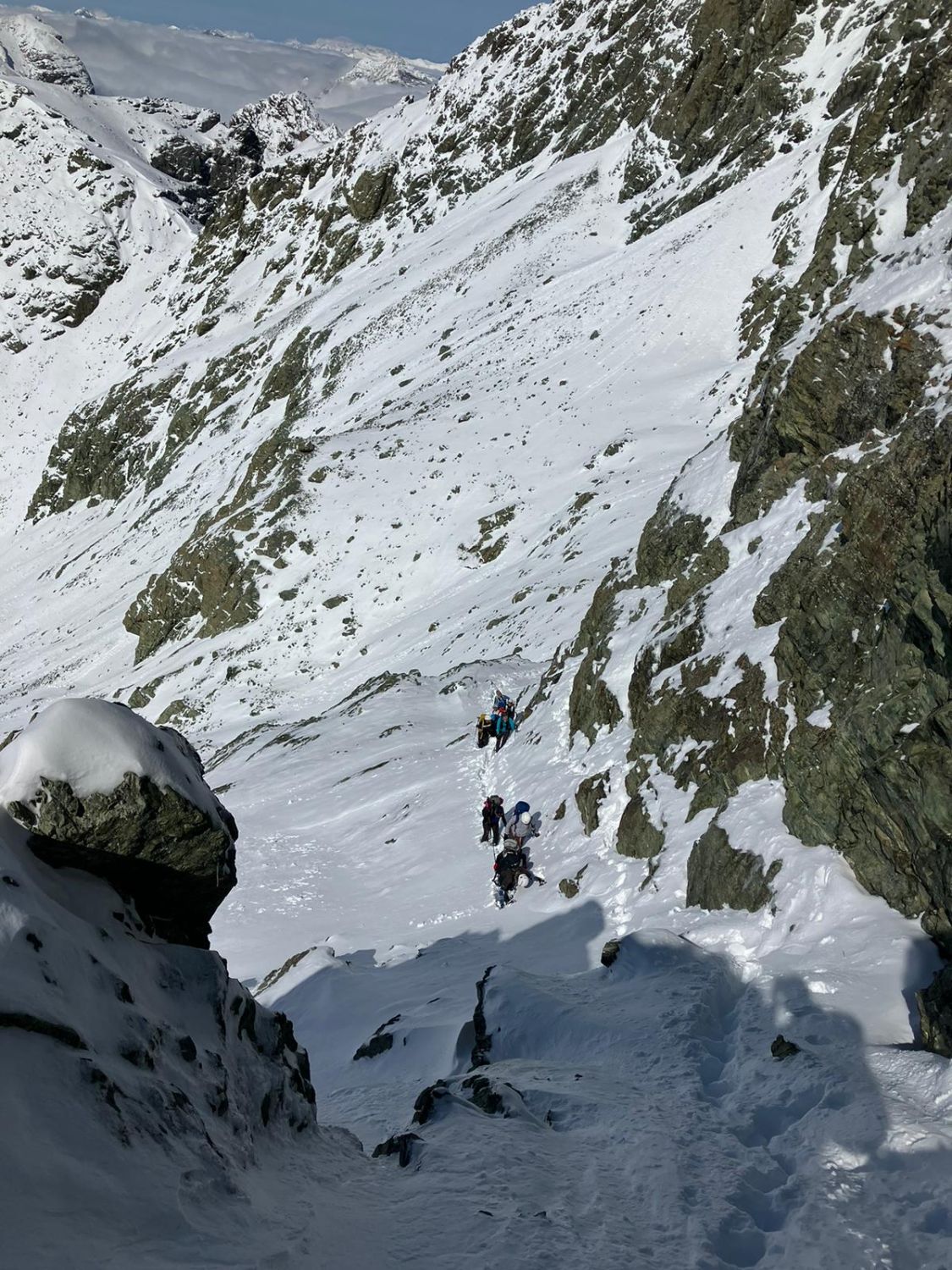 Super Gruppe, für einige die erste Tour in steilen Firn-Fels Flanken