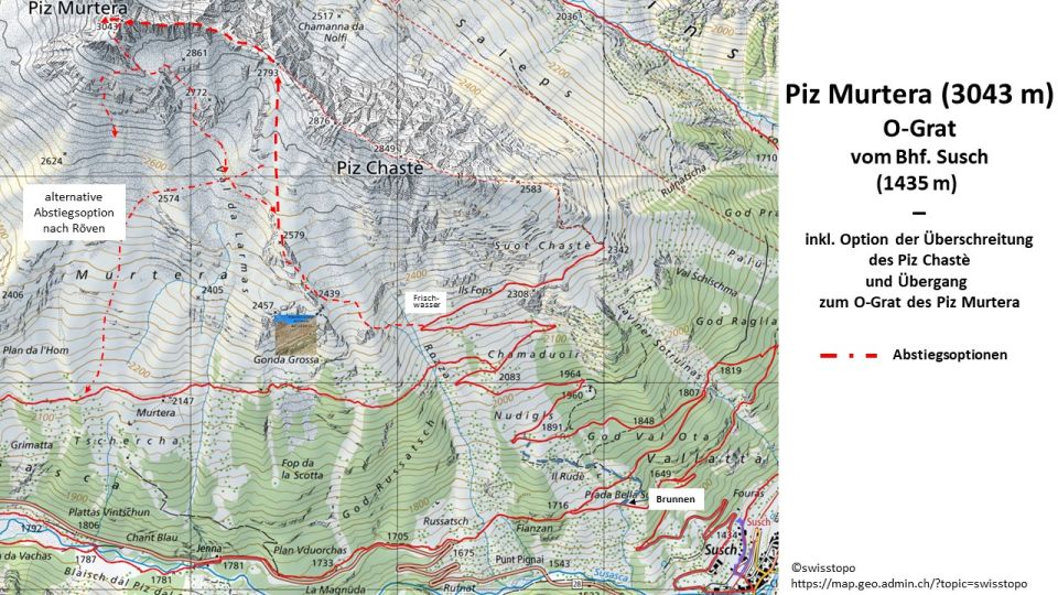 Unangenehmer Abstieg vom Gipfel durch die Blockhalden der S- und SO-Seite bis zu den erst ab ca. 2600 m beginnenden Rasenschrofen.