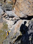 Die sechs Abseilstellen perfekt eingerichtet. Auf den letzen Metern beim Abstieg zur Rot Furgga sind noch Schneereste, aber gut zu gehen. Auf der Südseite alles trocken.