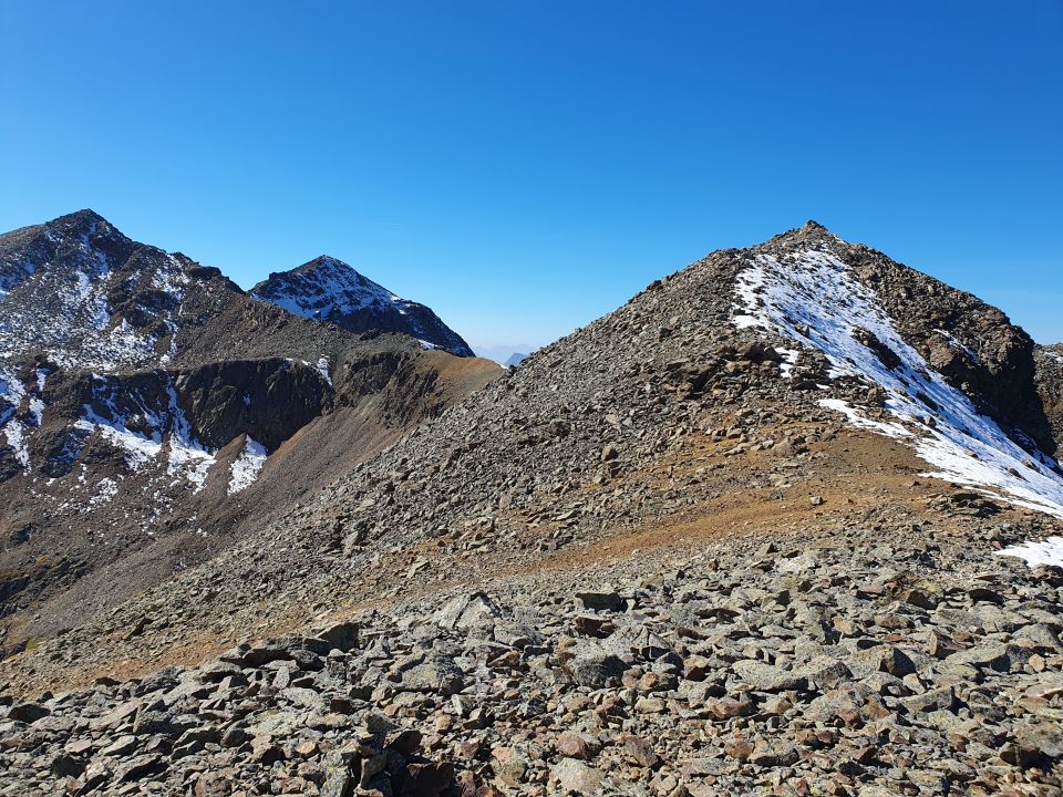Es ist eine schöne Gratwanderung auf der man viele Gipfel, die nicht weit entfernt sind, einsammeln kann. Atemberaubend ist stets die Aussicht zu den Seen im Oberengadin und zum Berninamassiv.