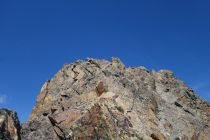 Am Gipfel des Chli Leckihorn um ca. 10:30. Da der Geltscher zwischen den Leckihörner schon aper war, und stetig Steinschlag kam , sind wir den ausgetretenen Weg im Brüchigen Fels gefolgt, der auch zum Hächsten Punkt vom Chli leckihorn führt, anschliessend in der Flanke abgestiegen. Die Felsbrocken die man Queren muss hängen zum Absturz bereit auf dem Gletscher - unschön.