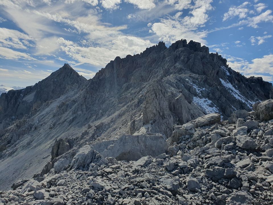 Beim ersten Turm (P2820), den ich westlich umgangen habe, habe ich durch 4 Steinböcke, die auf dem Turm turnten, vor meiner Nase Steinschlag erlebt, aber nichts passiert. Steinböcke sind die wahren Kletterer! Die wissen genau wo Mensch nicht hinkommt. ;o)