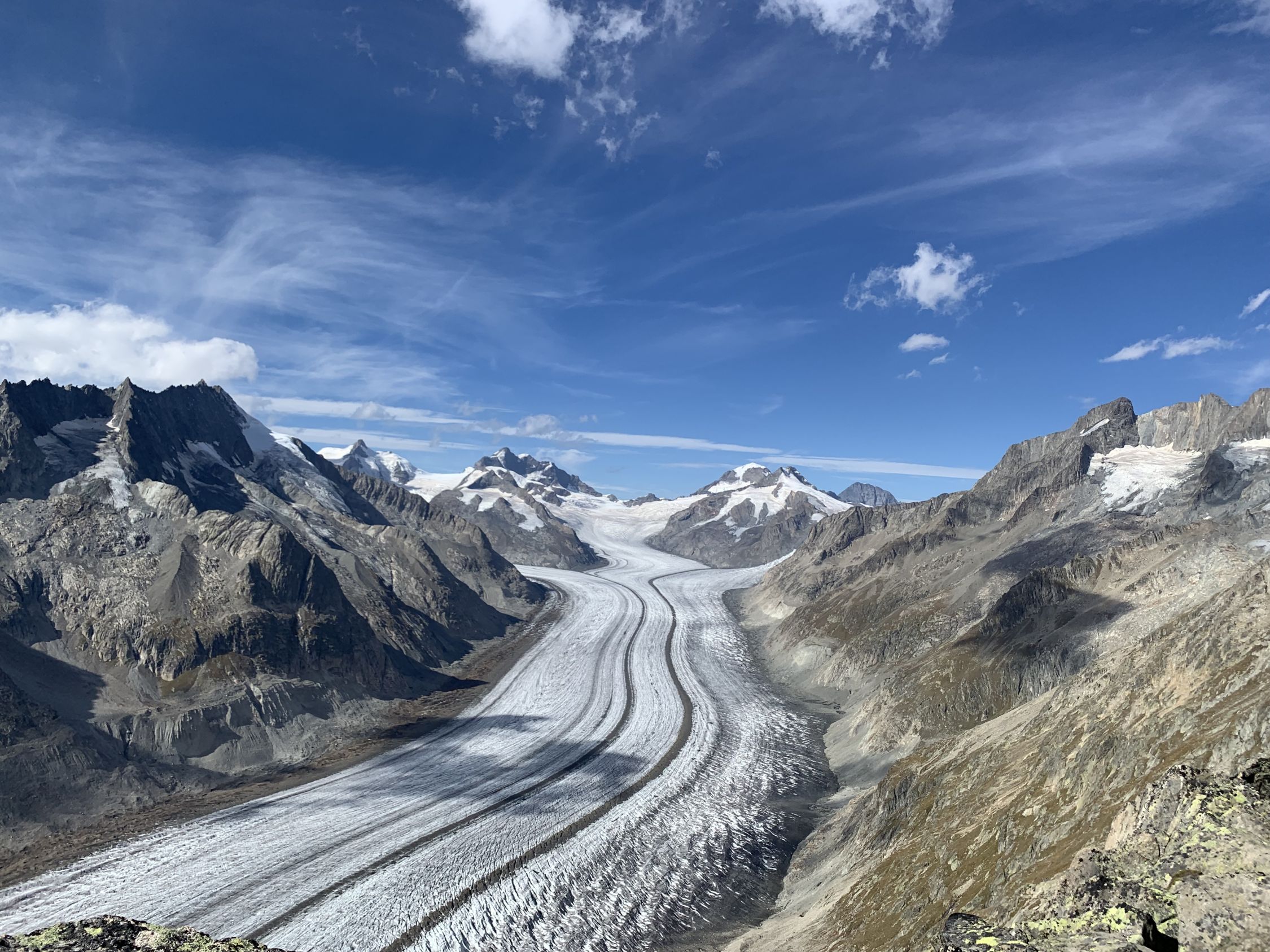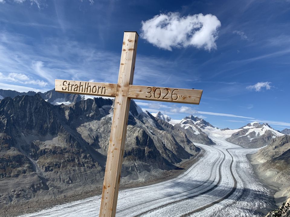Familien(kurz)Ferien mit Bruder. Drei Tage auf der Gletscherstube Marjelen. Für die Kinder Abenteuerspielplatz um die Hütte (Boulderblöcke, Bergkristalle, Grasfrösche). Besuch der Gletschergrotte am Aletschgletscher, Family-Hike über‘s Eggishorn - und eben kurzweiliger Nachmittagsaufstieg auf‘s Strahlhorn. Lohnend. Danke für die tolle Unterbringung auf der Gletscherstube.