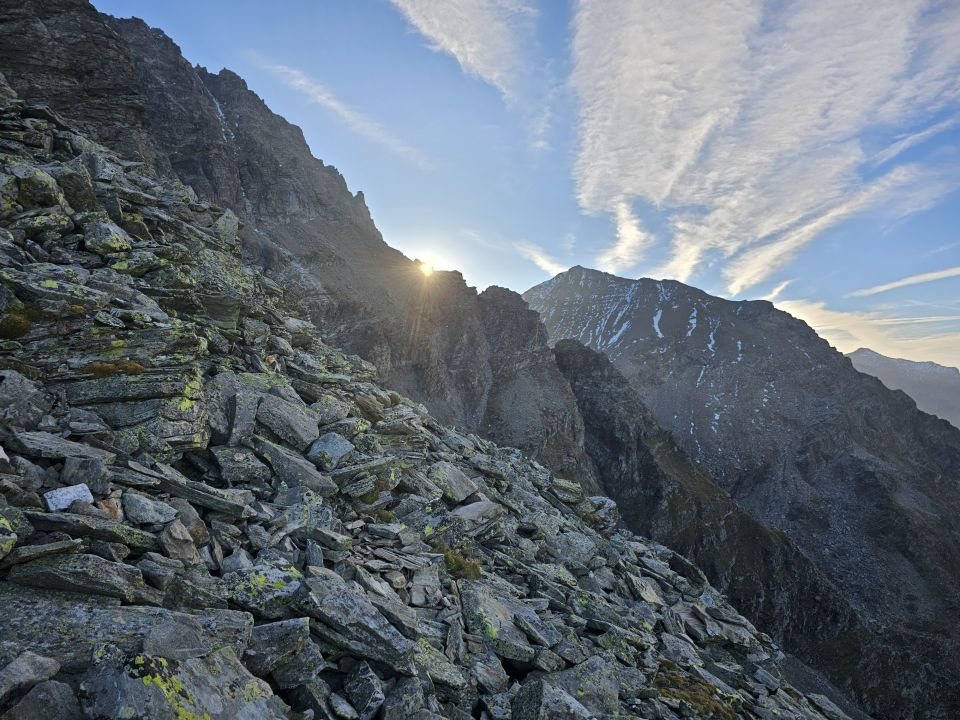 Das SAC-Tourenportal wies von dieser Route ab, Grund dafür ein Felsabbruch unter dem Adulajoch, von dem bemerkten wir aber gar nichts. Der komplette Weg ab dem See ist ausserordentlich gut markiert mit blauen Punkten und mit Drahtseilen gesichert, die Wegfinddung ist Top!