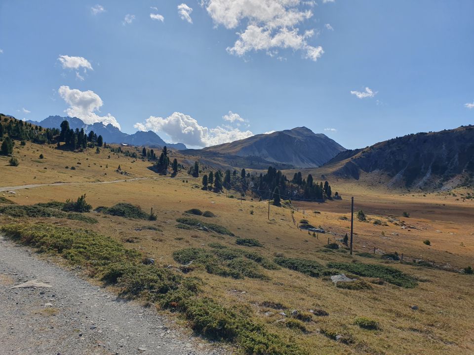 Um die Wanderung etwas abzukürzen (Einsparung von ca. 3 Std) ist es empfehlenswert mit dem Velo von Buffalora bis Mots (P2360), dort, wo es hinab zur Alp Mora geht, zu fahren, es dort zu deponieren und von dort zu Fuss hinab via Alp Mora den Grat zu machen, um nach der Gratwanderung mit dem Velo wieder zurück nach Buffalora zu fahren.