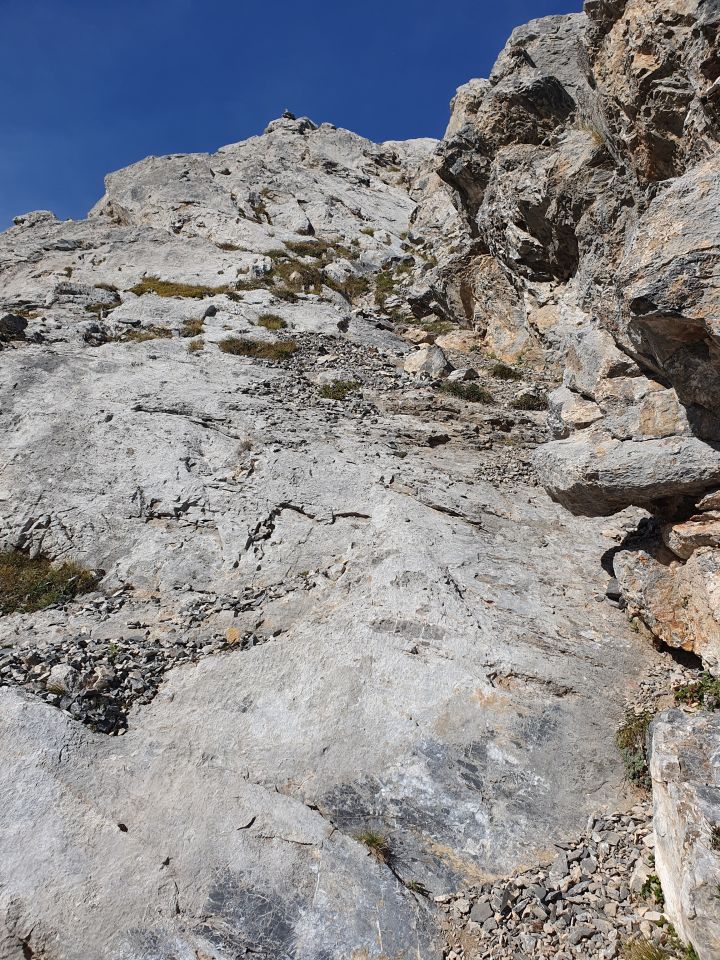 Falls sich jemand in der mitte des Grats, so bei P2513, aufgrund der schwierigen Kletterpassagen zurückkehren möchte, ist dies meiner Meinung nach nicht mehr empfehlenswert, resp. ist es leichter P2665 zu erreichen, da danach die restliche Tour nur noch T3 ist.