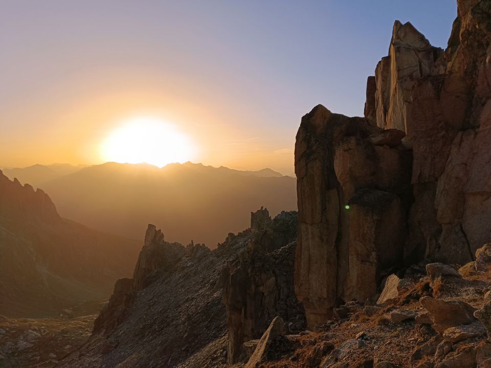 Start: 7:00 Uhr von der Albert-Heim-Hütte. Zuerst folgten wir dem breiten Wanderweg, bogen dann rechts ab in Richtung des Couloirs beim Sunnig Berg (keine Wegspuren vorhanden). Ab ca. 2650 m fanden wir Wegspuren, denen wir bis zum Übergang/Grat folgten (~T4, 1h). Der breite Grat führte uns weiter bis zu einem Punkt bei ca. 3050 m, ohne dass wir auf grosse Schwierigkeiten stiessen. Hier entschieden wir uns, das Seil auszupacken und einige Stellen am laufendem Seil zu sichern. Im SAC-Tourenportal ist die Schwierigkeit mit 2a angegeben und es wird darauf hingewiesen, dass schwierige Stellen im oberen Bereich ostseitig umgangen werden können. Wir fanden dies im Bereich des letzten Turms vor dem Gipfel nicht offensichtlich und sind größtenteils dem Grat gefolgt. Wir schätzen die Schwierigkeit hier eher mit Stellen 2c/3a ein. Auf der Webseite der Albert-Heim-Hütte wird eine weitere Variante gezeigt (siehe Fotos), die mit der Schwierigkeit 3 angegeben wird. Wir haben die Abzweigung zu dieser Variante nicht gesehen. Den Gipfel erreichten wir um 10 Uhr (Gesamtzeit Aufstieg ab Albert Heim-Hütte 3h). Der Abstieg erfolgte über die gleiche Route (2h). Eine sehr schöne, nicht häufig begangene Route.