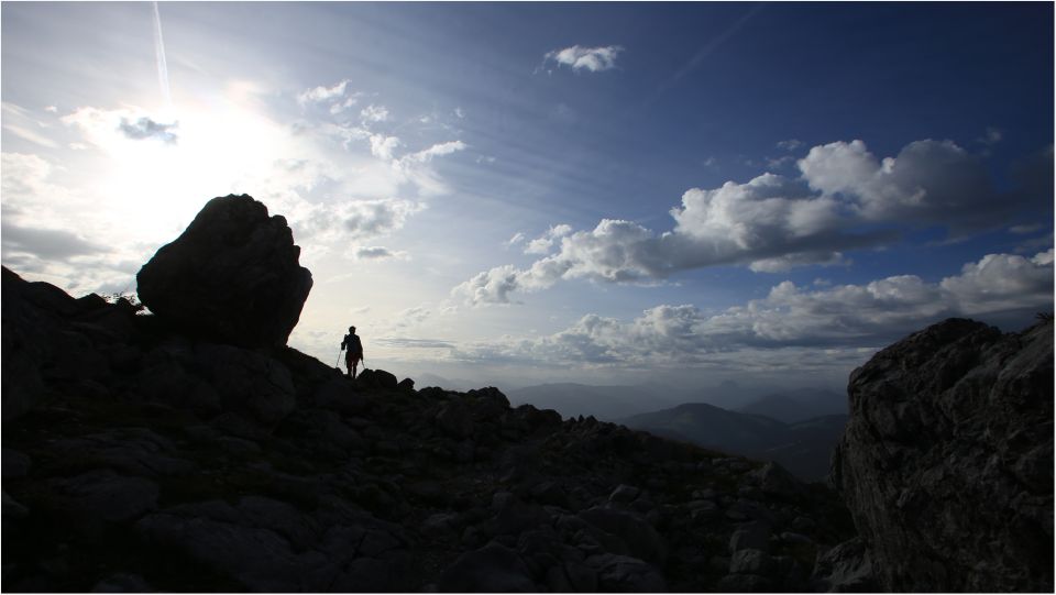 Ab Roter Rinn Scharte zunehmend kräftiger Wind aus NW, oben am Gipfel deshalb eher frisch.