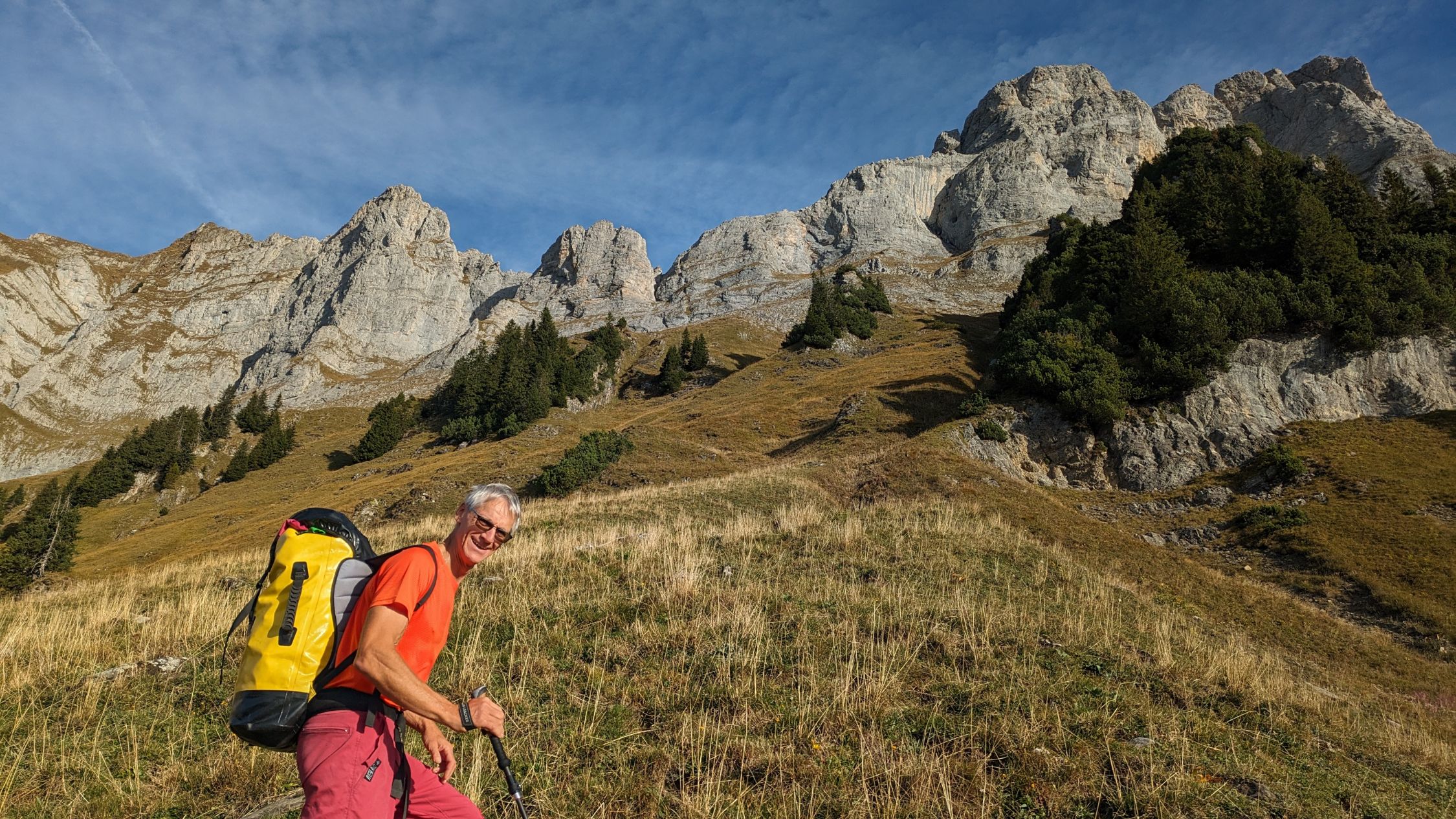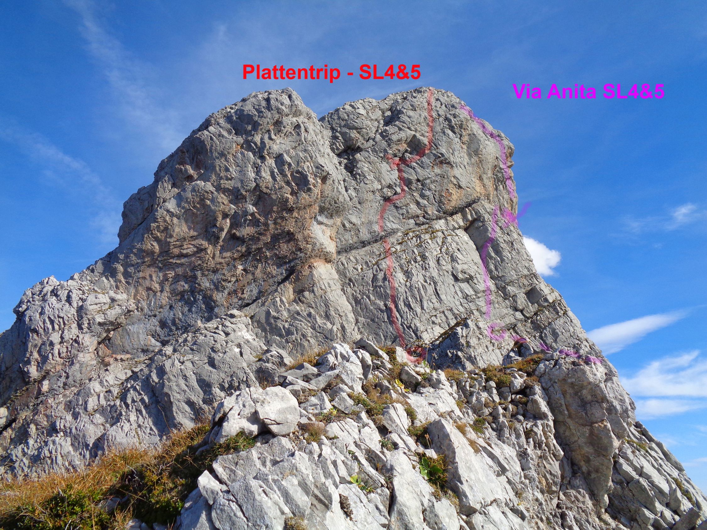 Traumhafter Herbsttag. Wir sind erst 3 SL geklettert, dann abgeseilt, dann Via Anita SL1-3 und dann die oberen SL von Plattentrip weiter. So braucht man keine Schuhe mittragen und hat 8 gute SL.