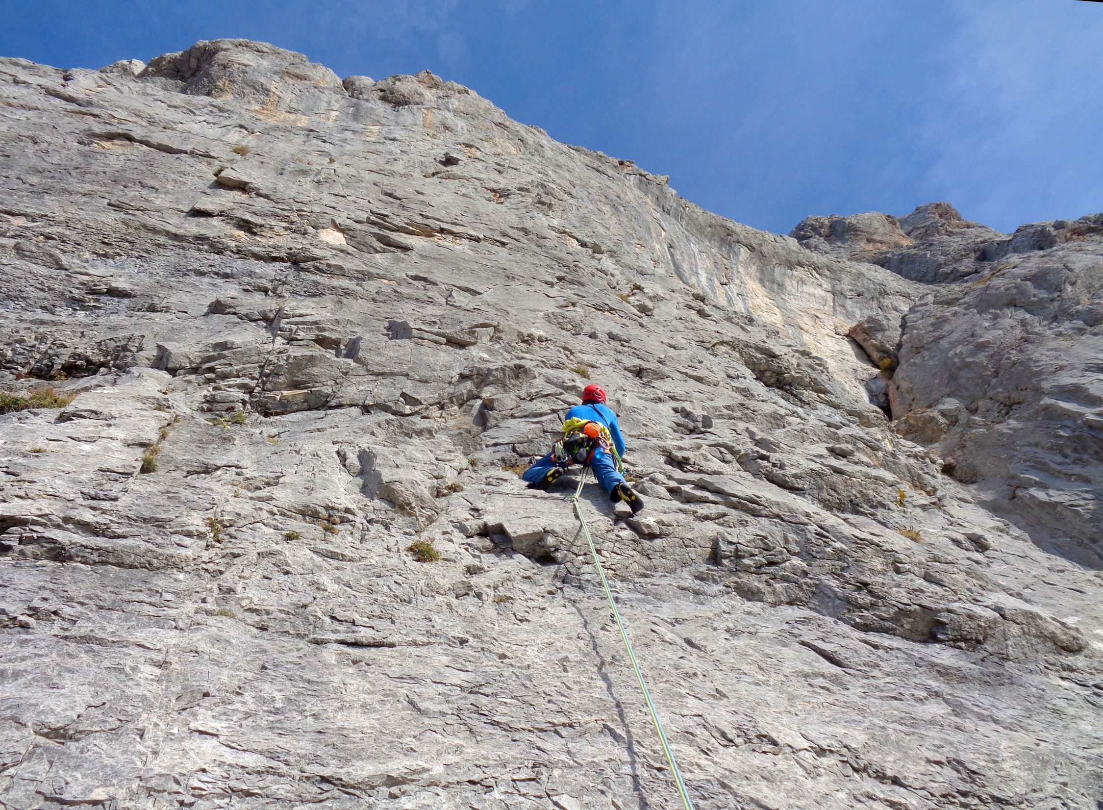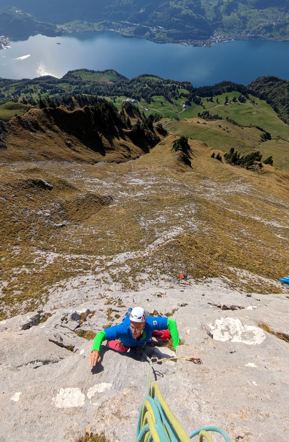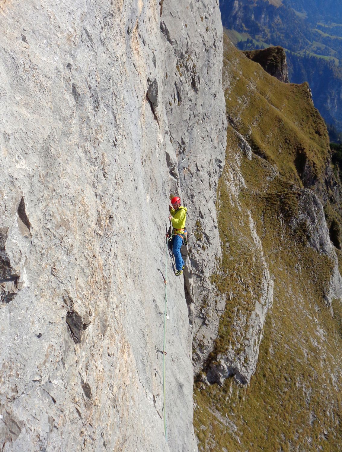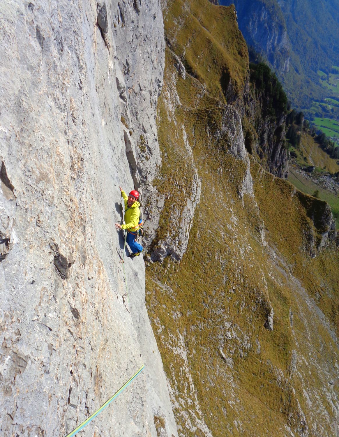 Siehe Routenbeschreibung: vermutlich die best-gesicherte Route im Churfirsten-Gebiet (neben Liechtblick). Es wäre schön, wenn es mehr davon gäbe. So lässt sich das Klettern voll genießen, auch wenn es ein paar lose Blöcke gibt. Insgesamt sehr guter Fels und extrem interessante Kletterstellen, vor allem die beiden unterschiedlichen Quergänge (unten plattig, oben athletisch)