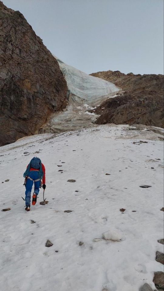 Extremer Andrang zu dieser Tour am 14.10. Insgesamt waren 6 Seilschaften unterwegs. Teilweise starteten diese um 3 Uhr im Tal. Wir sind um kurz nach 5 gestartet und konnten zum Glück 4 Seilschaften im Zustieg überholen.