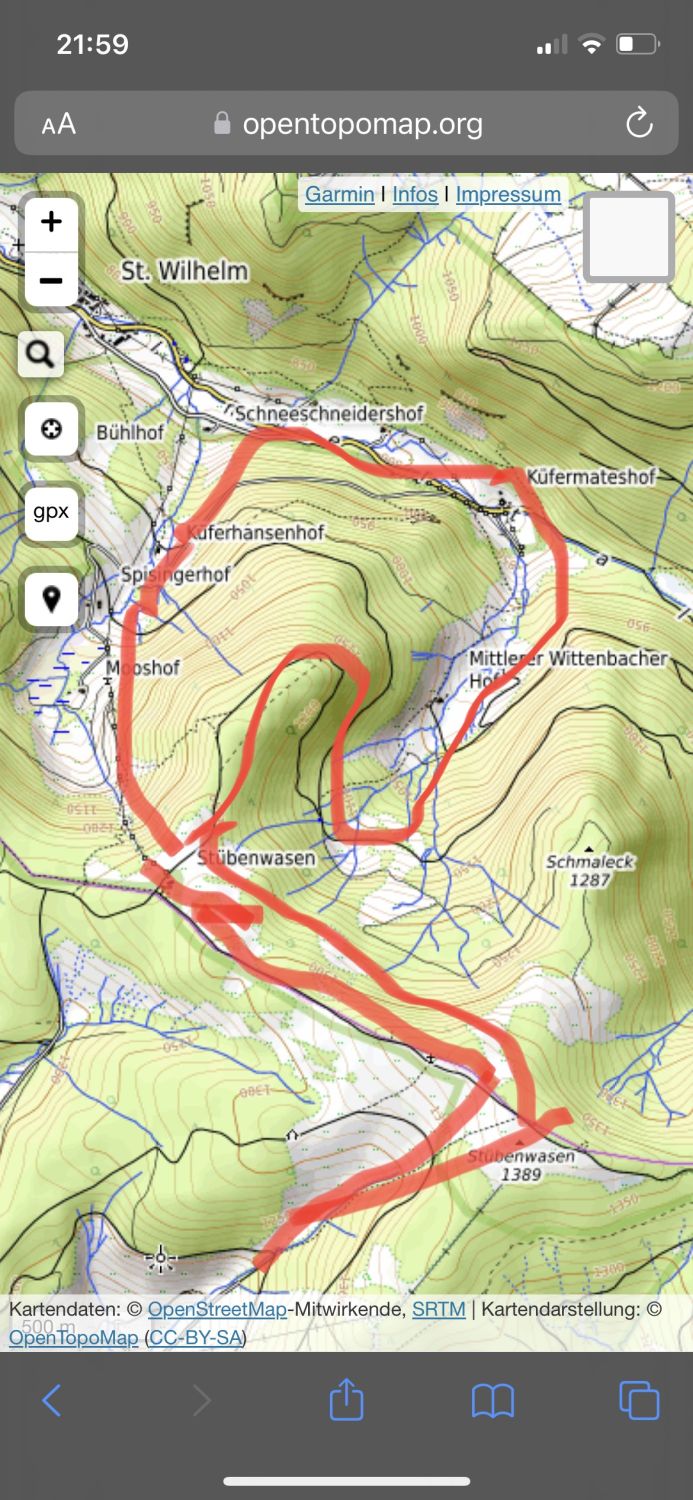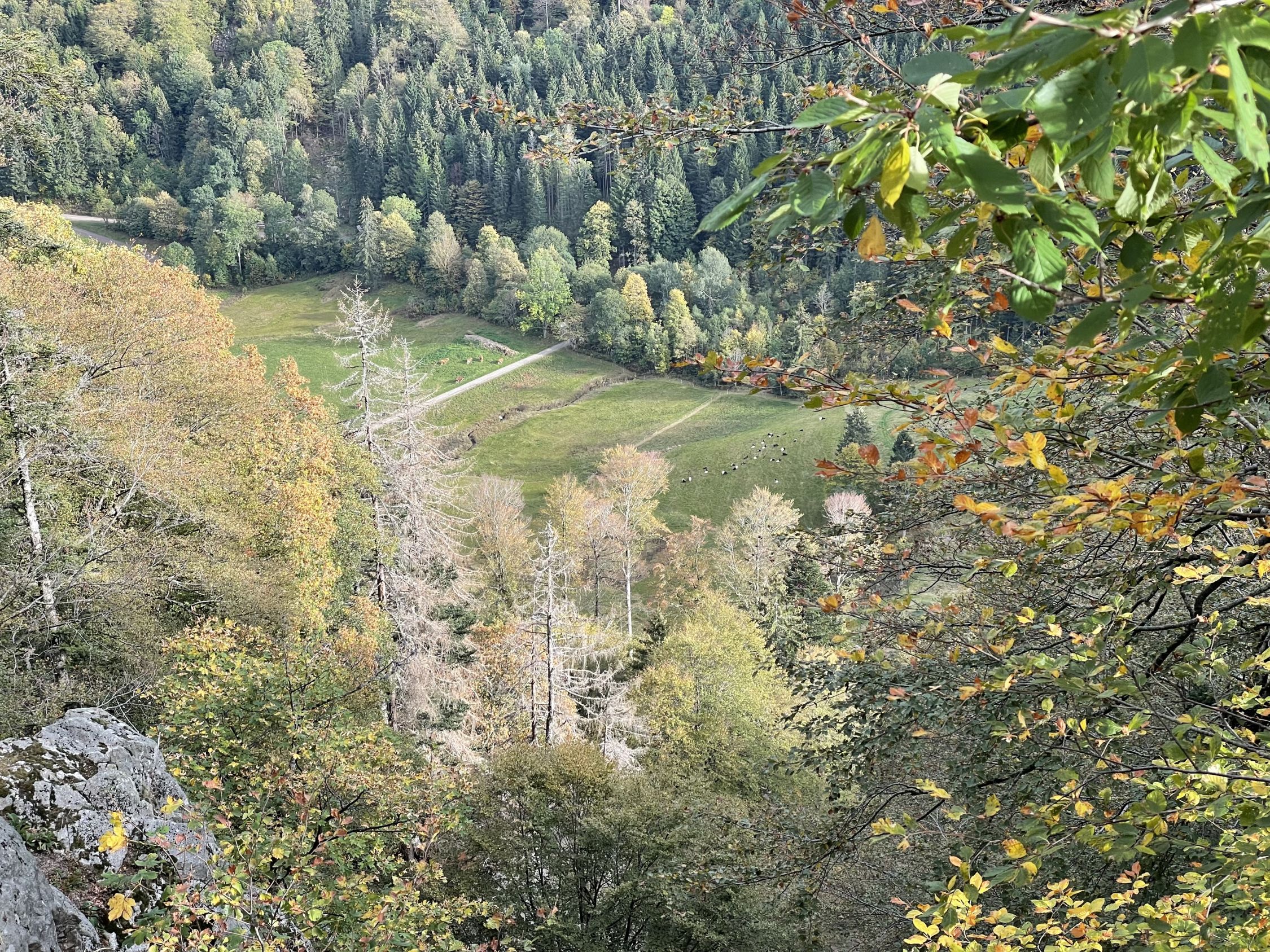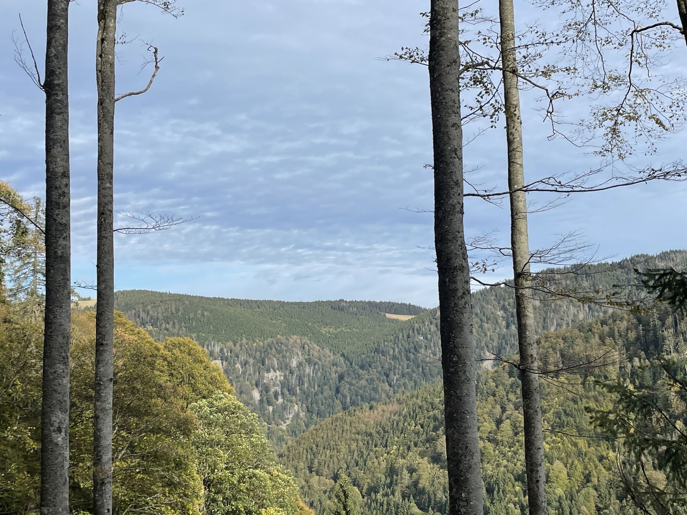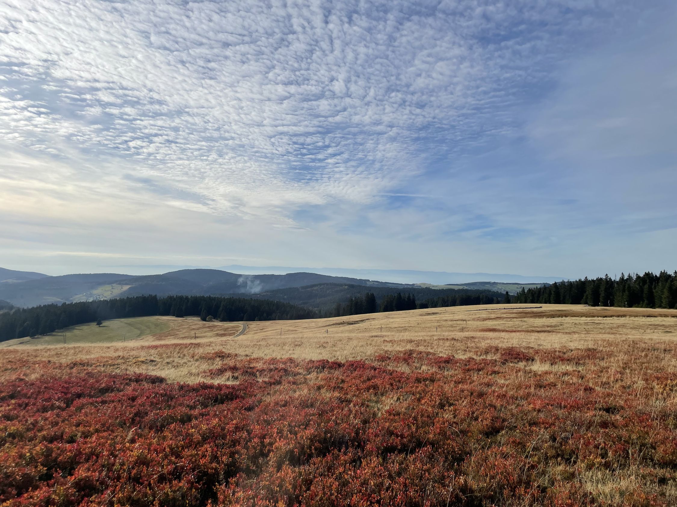 Für den Indian Summer mit den schönen Herbstfarben war ich etwas zu früh dran dieses Jahr, aber trotzdem war das eine schöne Runde. Von Todtnauberg ist man rasch auf dem Stübenwasen, und unterhalb des Restaurants kann man den steilen Katzensteig hinunter ins ursprüngliche Wilhelmer Tal gehen. Ich entschied mich dafür, nicht wie sonst meist zum Feldberg weiterzugehen, sondern vom Napf aus wieder zum Stübenwasen hochzusteigen. Das ist eine ebenfalls lohnende Variante, wie ich feststellen durfte. Oben kam ich dann doch noch in den Genuss der Herbstfarben, Heidelbeersträucher sei Dank, und im Dunst sah man sogar die Hochalpen. Zufrieden wieder nach Todtnauberg hinunter.