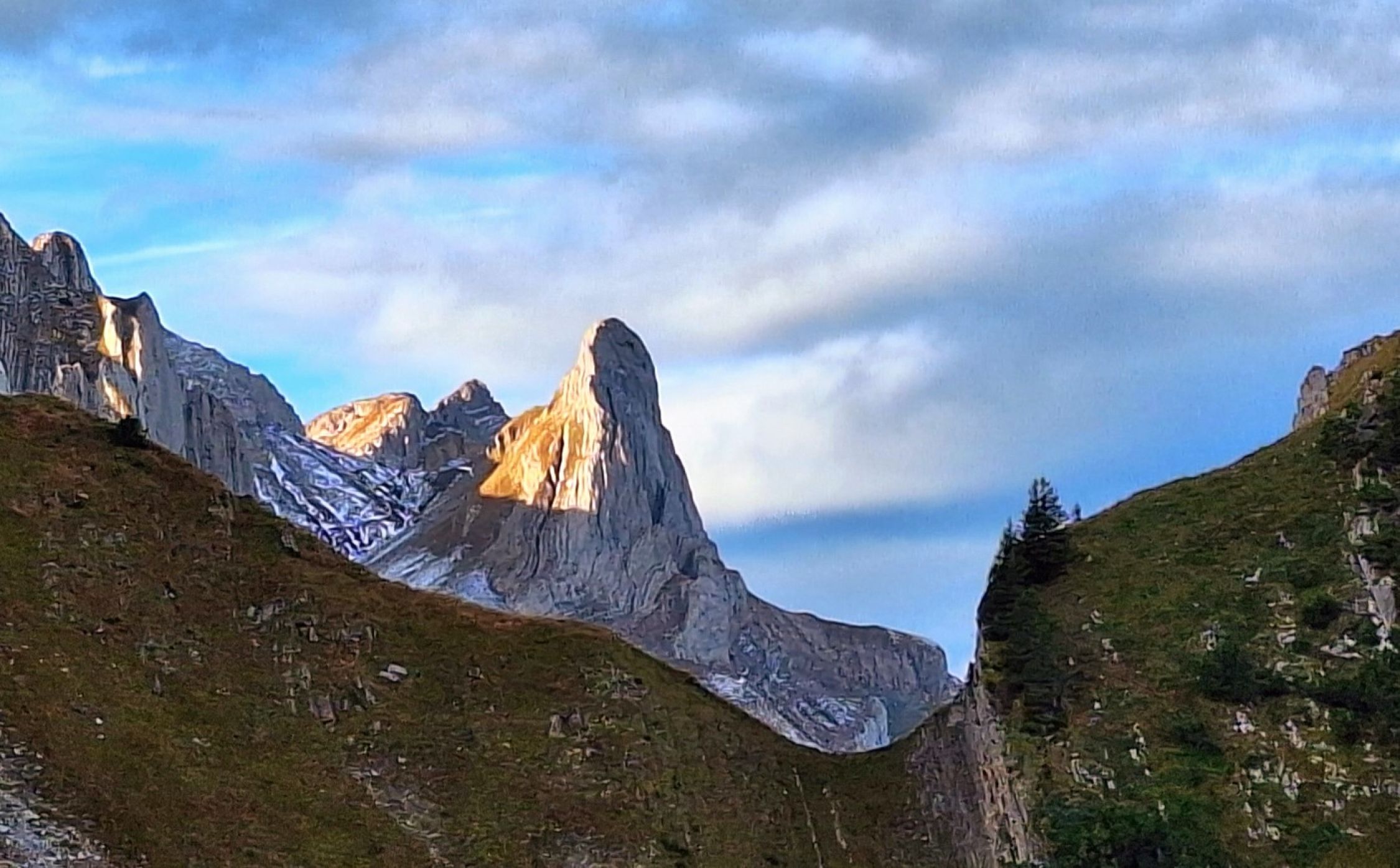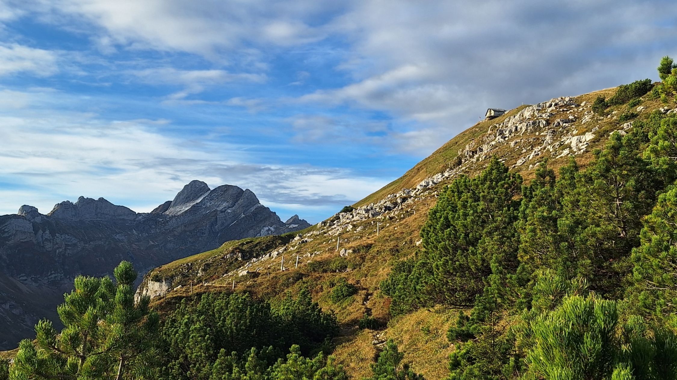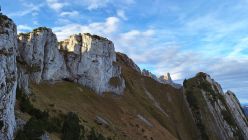 Start bei leicht bewölktem Himmel, der sich mal mehr mal weniger bedeckte mit längeren Aufhellungen dazwischen (Föhn). Mäßiger Wind auf dem Schäfler, stärker lagebedingt am Äscher. Sehr milde Temperaturen, teilweise T-Shirt-Verhältnisse. Der Schnee vom Sonntag war kein Thema mehr. Alle Wege und Pfade waren trocken.