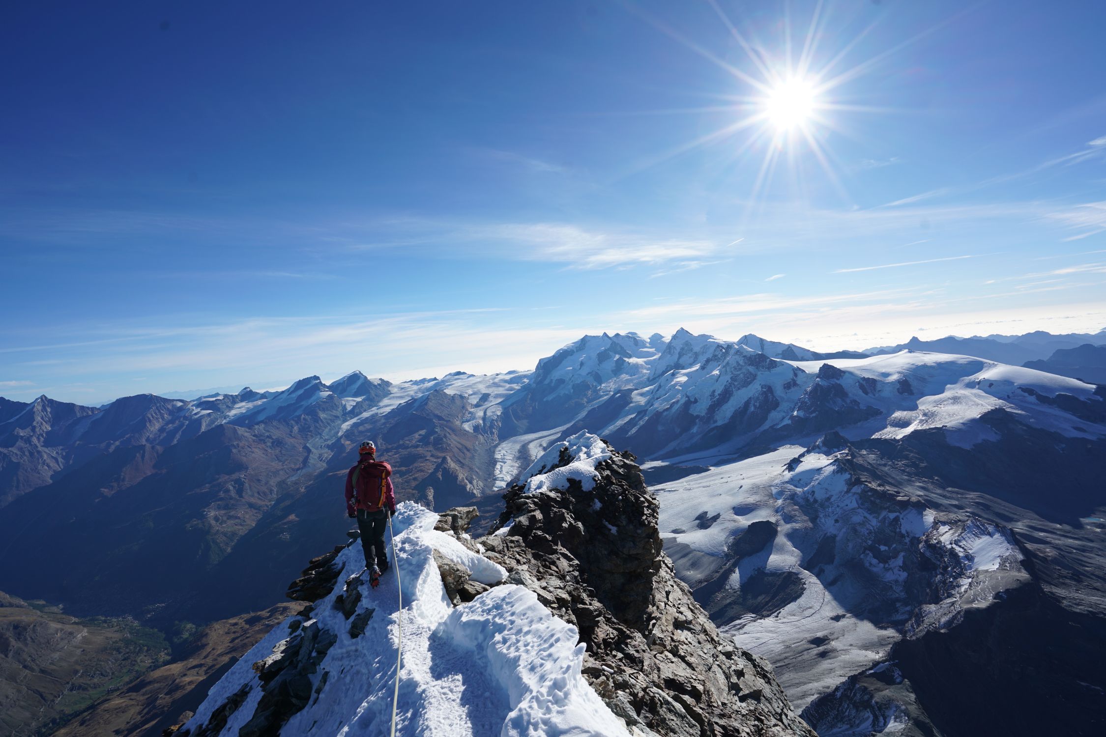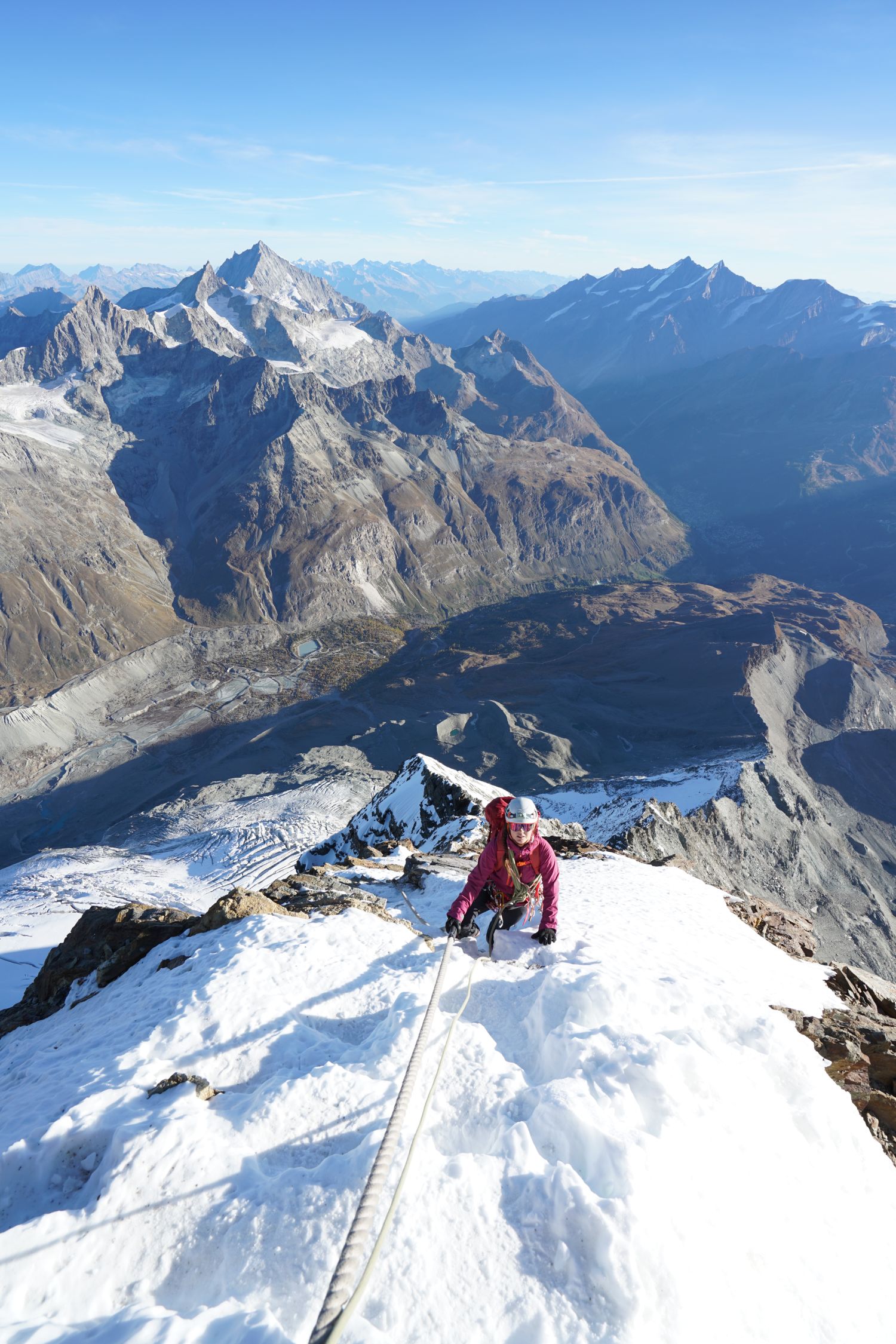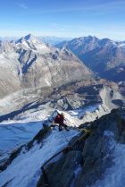 Wohl einer der letzten guten Tage am Berg dieses Jahr. Wir sind absichtlich ausserhalb der Saison gegangen, damit weniger Andrang am Berg ist und es ist voll aufgegangen. Top Verhältnisse am Matterhorn, die Steigeisen haben wir erst nach der Schulter angezogen. Die Wegführung ist in der Tat ein wenig komplex, an unserem Ankunftstag wurde gleich eine Gruppe ausgeflogen, die sich unterhalb des Solvybiwaks verstiegen hatte. Wir hatten das Glück auf dem Weg nach oben einem Bergführer folgen zu dürfen. Nach unten haben wir den Weg dann mit kleinen Verhauern aber gut gefunden. Ab Solvaybiwak ist die Wegfindung deutlich einfacher. Die Kletterei war einfacher als erwartet (auch die Moseleyplatten), wir gehen aber auch viel Klettern. Ausserhalb der Saison an so einem wunderschönen Tag eine sehr zu empfehlende Tour!