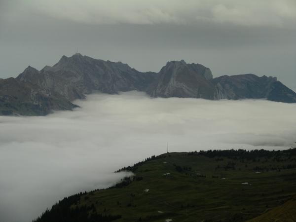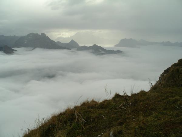 Sehr geeignete Nachmittagstour ab Arvenbühl. Bis knapp 1600 Meter Nebel, darüber bedeckt mit zügigem SE-Wind. Tolle Aussicht!