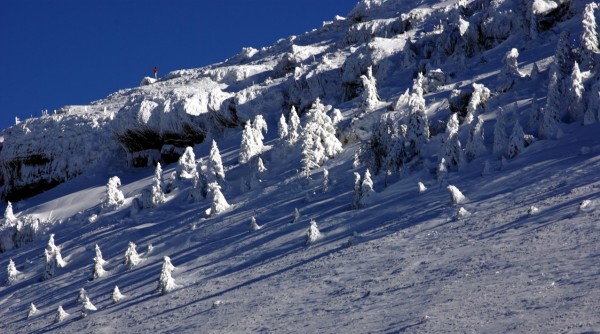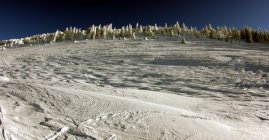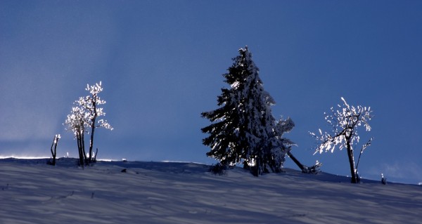 schnee windverblasen, teilweise eisig, vormittag eisige bise. nachher fast windstill.