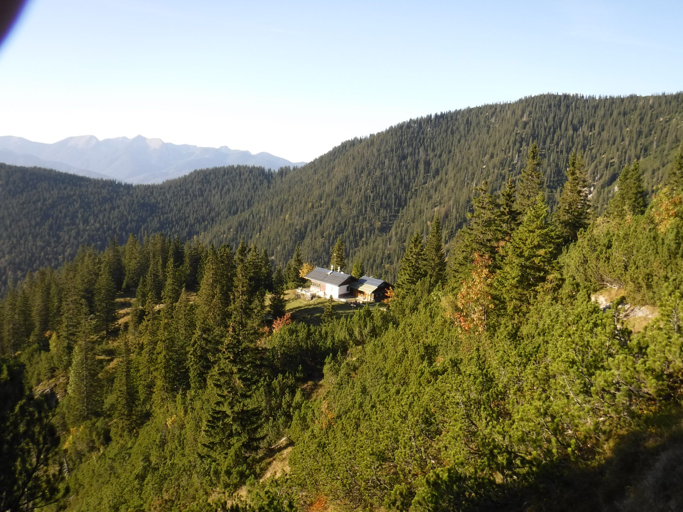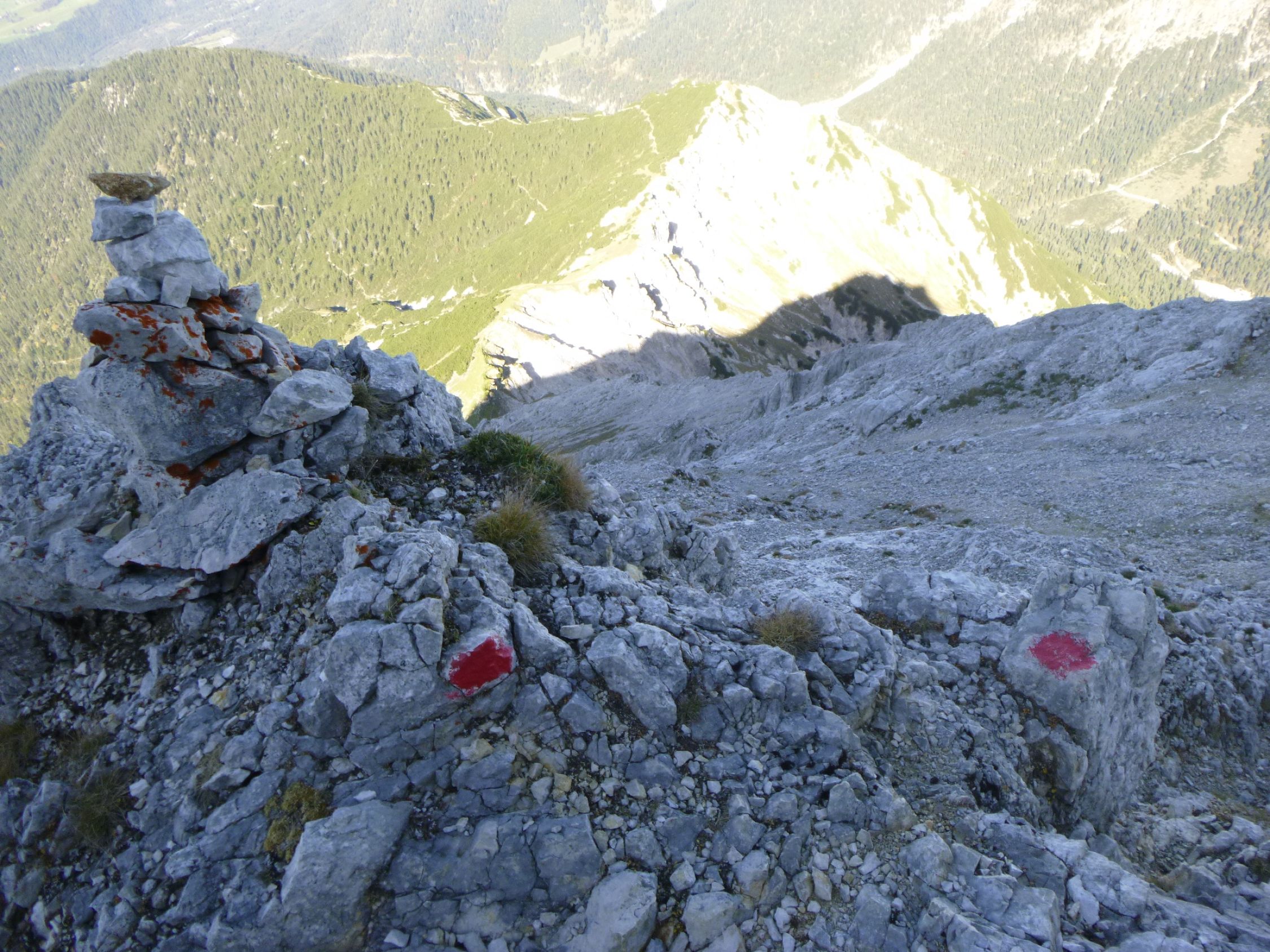 Nach der Hochlandhütte überholte mich ein Bergsteiger mit Mini-Funkgerät und Peitschenantenne im kleinen Rucksack. Am Gipfel traf ich ihn wieder an, von wo er im 2 m – (Amateurfunk)Band seine QSO’s (Kurzgespräche) fuhr. Nach mir kam am Wörnersattel eine junge Bergfreundin an, die im gleichen Tempo wie ich zum Gipfel aufstieg. Im Aufstieg zum Gipfel kamen mir auf halber Höhe 4 ältere Bergdamen entgegen, die recht früh aufgestanden waren. Im Abstieg begegnete ich noch 4 Leuten. Mehr waren heute nicht unterwegs. An der geschlossenen Hochlandhütte traf ich im Abstieg auf einen jungen Maler, der dort eine Zeichnung anfertigte.