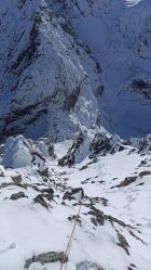 Standplätze, einige Bohrhaken und Fixseile beim Abstieg waren noch gut zu finden.