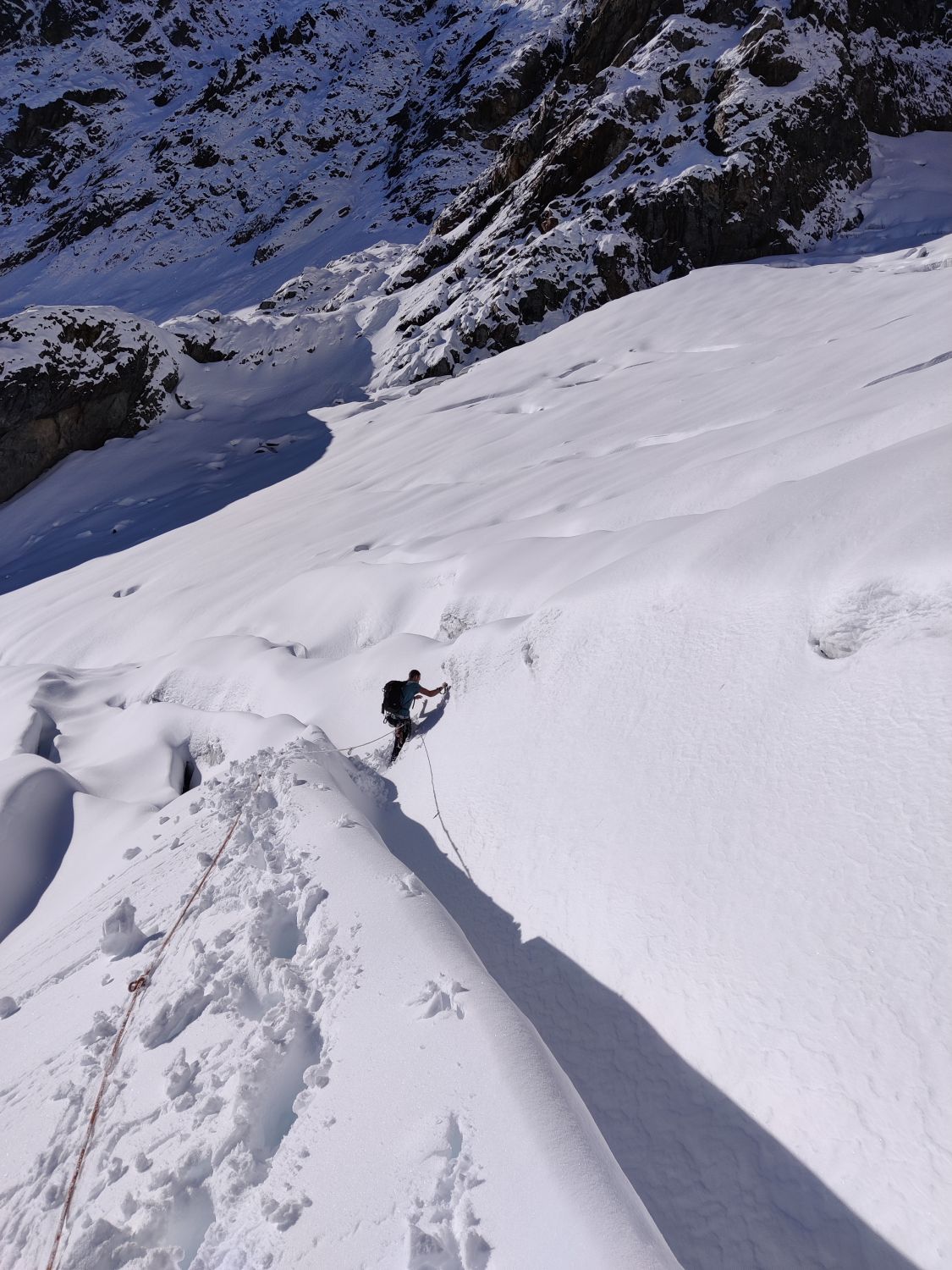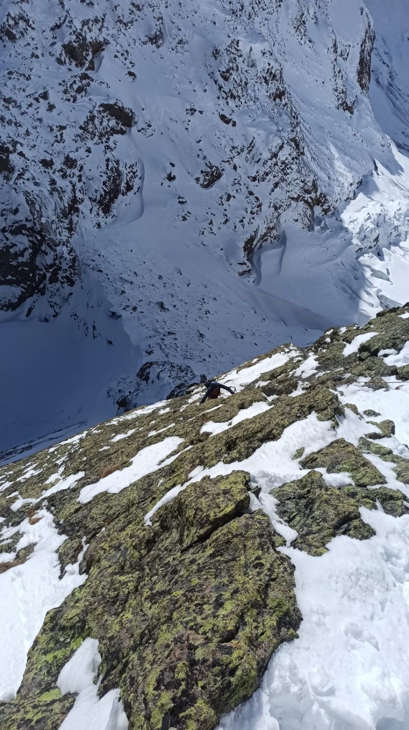 Nächtlicher Pulverschnee am Morgen schon auf dem Weg zur Sustlihütte mahnte zur Vorsicht, der Weg war aber noch gut zu finden und gut begehbar. Ab ca. 2400m geschlossene Schneedecke. Auf dem Stössenfirn dann bis zu 50cm tiefer Schnee, wir sanken teilweise bis zu den Knien ein. Im oberen Teil beim Grassenjoch durch angesammelten Schnee noch tiefer. Größere Spalten waren noch sichtbar, kleine Spalten jedoch bereits bedeckt. Beim Überwinden der Spalten teilw. anstrengendes Wühlen im Schnee. Der Übergang vom Gletscher zum Grassenjoch ging recht problemlos. Im unteren Teil der Südwand nasser Fels, Pulverschnee und Eisglasur. Im oberen Teil Fels tendenziell trockener und mit Schnee gefüllte Rinne. Hier sind wir der Rinne rechts gefolgt, was uns leichter erschien als die Felsrippe zu klettern. Auf dem Weg vom Gipfel zum Stössensattel dann wieder bis zu 50cm tiefer Schnee, wodurch wir möglichst auf der felsdurchsetzten Gratkante blieben (schwieriger). Zurück auf dem Stössenfirn immer noch eingesunken, aber abstiegsbedingt leichter. Weiter unten (ca. auf Höhe Sustlihütte) dann nasser Weg durch geschmolzenen Pulverschnee.