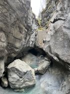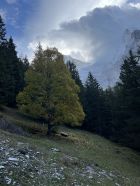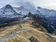 Recht starker Föhn, aber nicht problematisch. Dadurch alles tadellos trocken und schneefrei. Guter Zeitpunkt, da die Bahnen nicht fahren, somit entfällt der übliche Trubel auf dem Männlichen.