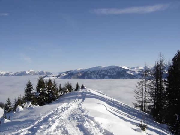 Windgepresster Schnee vorallem an Westhängen