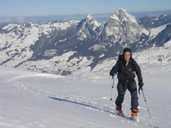 Unverspurte Hänge hinauf über Fronalp zum Gipfel.