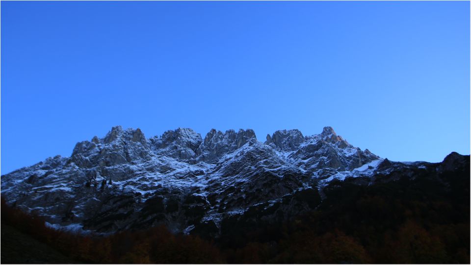 Unglaublich stimmungsvoller Herbstag im Kaiser. Tolles Licht, wenig Leute unterwegs und unterhaltsame Schneestapferei.