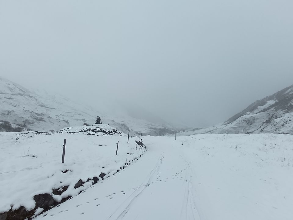 Start beim Dampfbahndepot und 3°C. Realp hatte knapp Schnee (so 5 cm), im Aufstieg konnten wir ab Mittlischgaden (~ 1650) bereits die Ski montieren. Bis Oberchäseren alles auf der Strasse. Da liegen dann bereits gute 30 bis 40 cm (je nach Windeinfluss auch mehr oder deutlich weniger). Die Bäche unterhalb Stelliboden sind natürlich alle noch offen - aber gut zu queren. Wir sind beim Stelliboden Hüttli dann umgekehrt, da das ganze auch mehr eine Erkundungsmission anstatt eine "richtige" Skitour war. Gelohnt hat es sich trotzdem. Auf der Abfahrt dann erstaunlich wenig Feindkontakt, die fehlende Unterlage macht sich aber bemerkbar (beim Stöckeln im Bremsschnee versinken die Stöcke in den Triebschneemulden ins Bodenlose). Da es während der gesamten Tour geschneit hat, reichte es auf der Abfahrt sogar bis zur Kraftwerk Abzweigung mit den Skiern (allerdings Vorsicht auf der Strasse, eine scharfe Kurve kratzt direkt auf dem Asphalt).