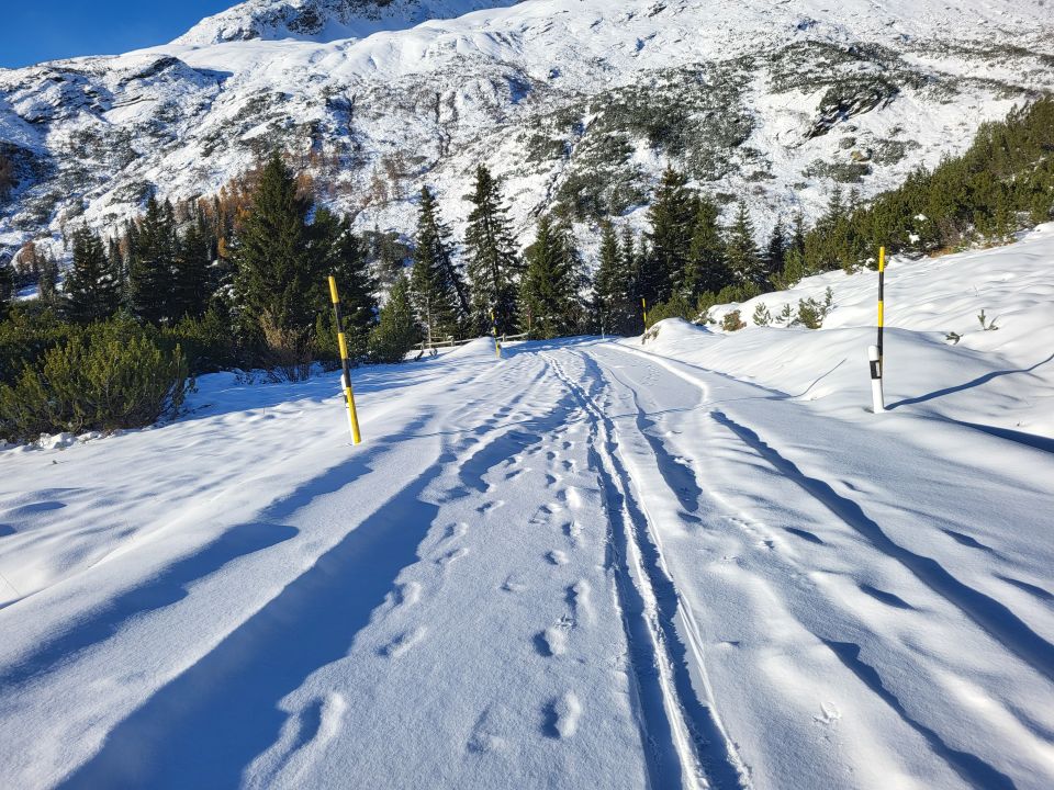 Schnee wäre zum abfahren perfekt gewesen, wenn dann die Sicht es zugelassen hätte. So halt der Aufstiegsspur entlang mit ein paar unerwarteten Geländewechseln. Aber für Mitte November sehr gut, besser als manche Skitour im ganzen letzten Winter.