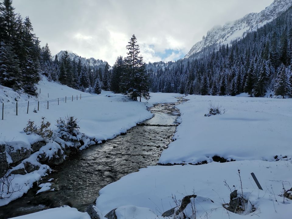 Knapp machbar ab Parkplatz Meniggrund, ab Brätliplatz dann gut und mit Unterlage. Oben teils etwas windbearbeitet.