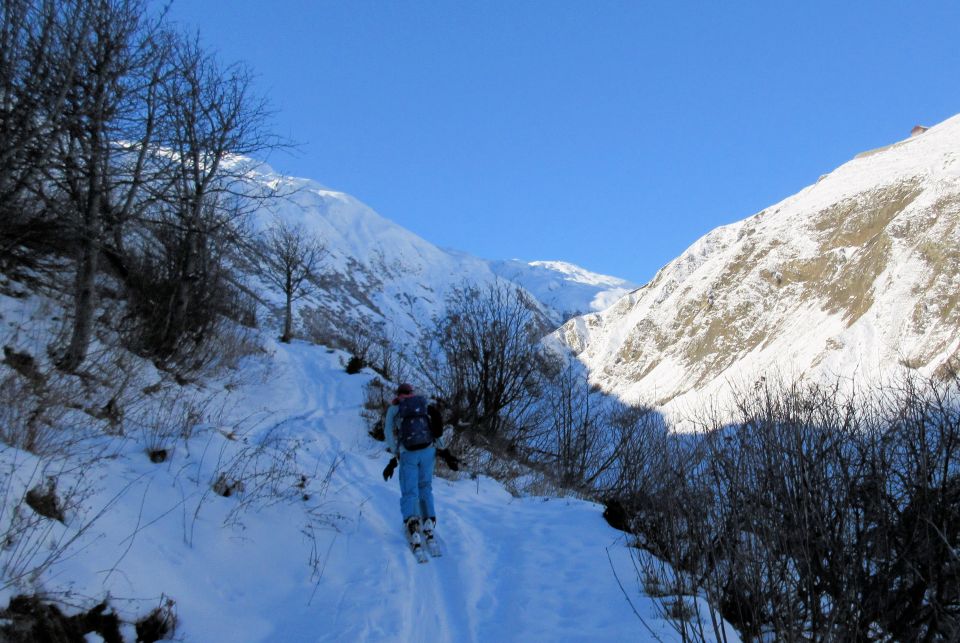 Abfahrt: Oben einige schöne Pulvermulden. Die Kuppen sind gelegentlich abgeweht und dann eisig hart. Oder dann auch eingewehter Schnee. Unterhalb 1900 m kommen die Alpenrosenstauden öfters zum Vorschein. Zum Glück machen diese keine Kratzer... Dann etwas ruppig auf die Strasse hinunter und darauf hart / stellenweise eisig zurück zum Parkplatz.