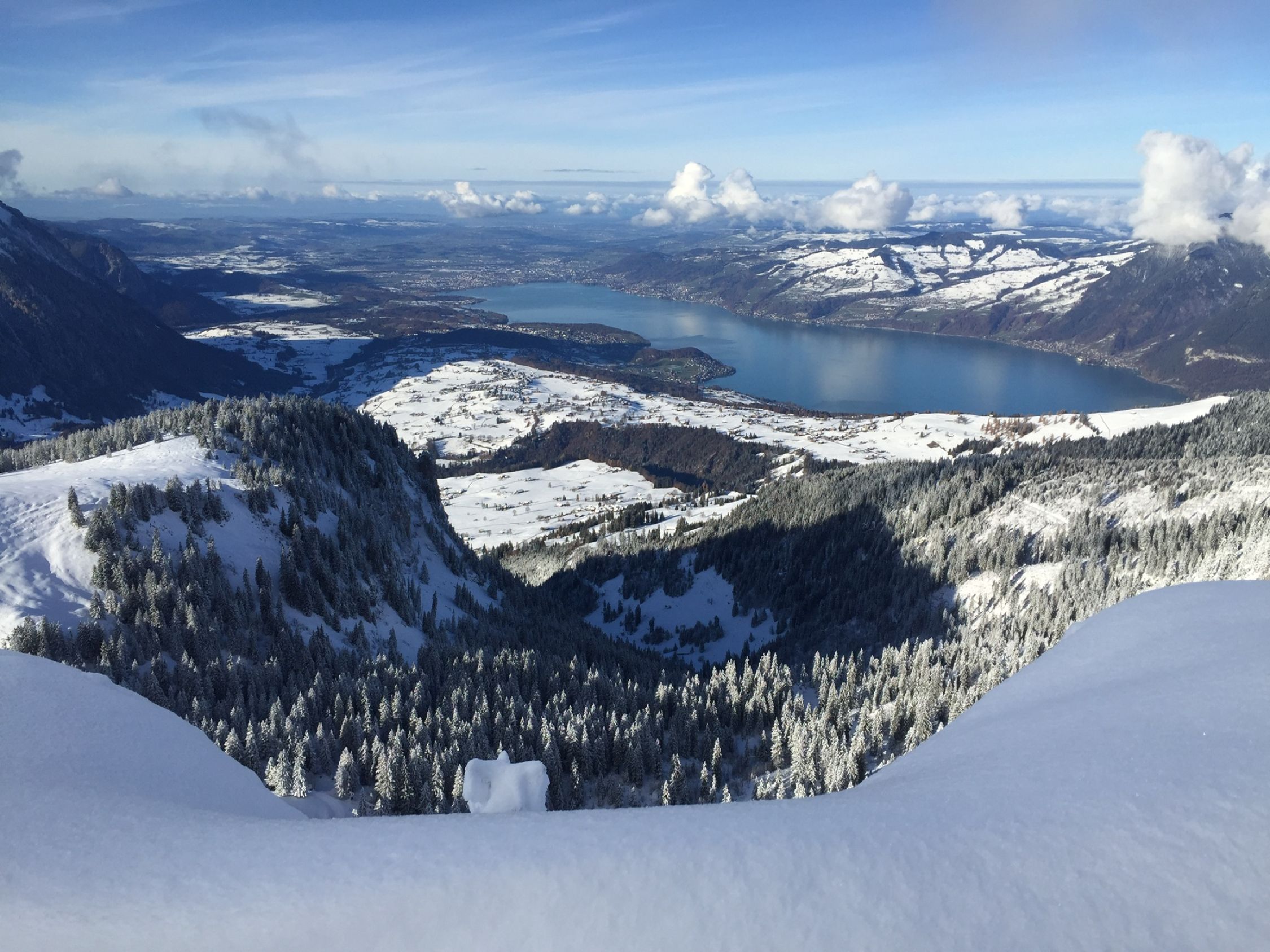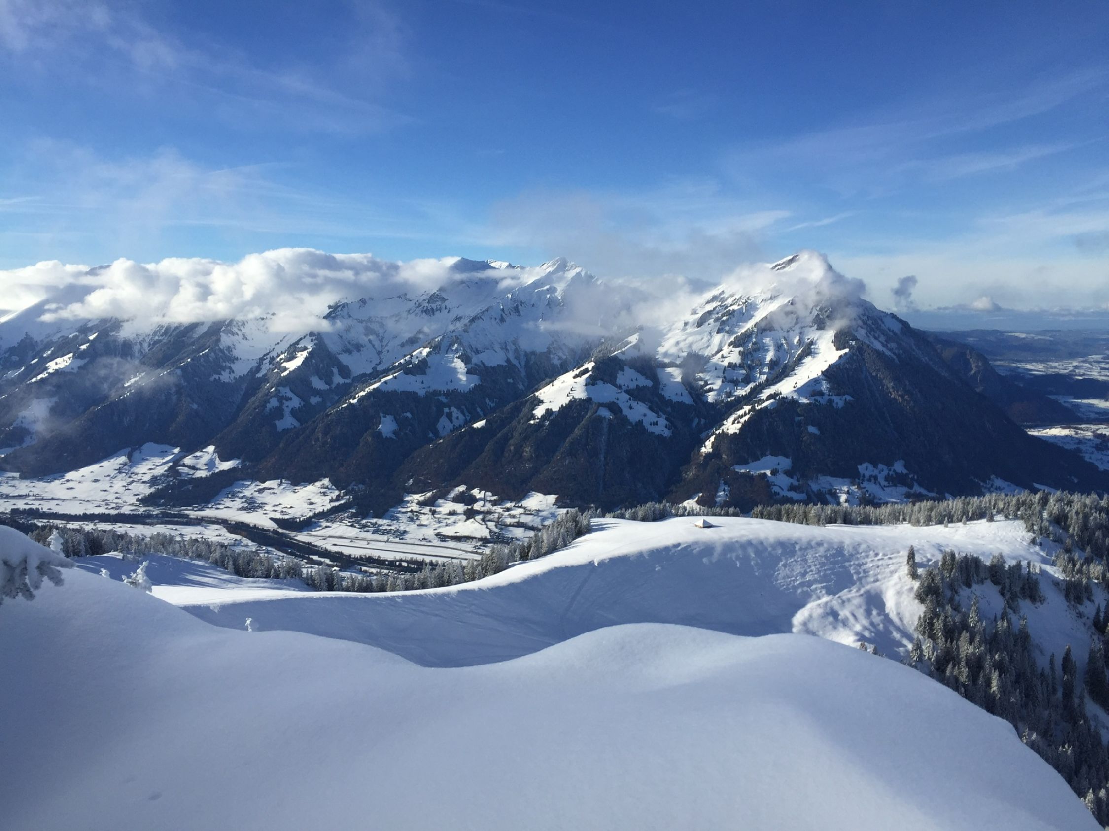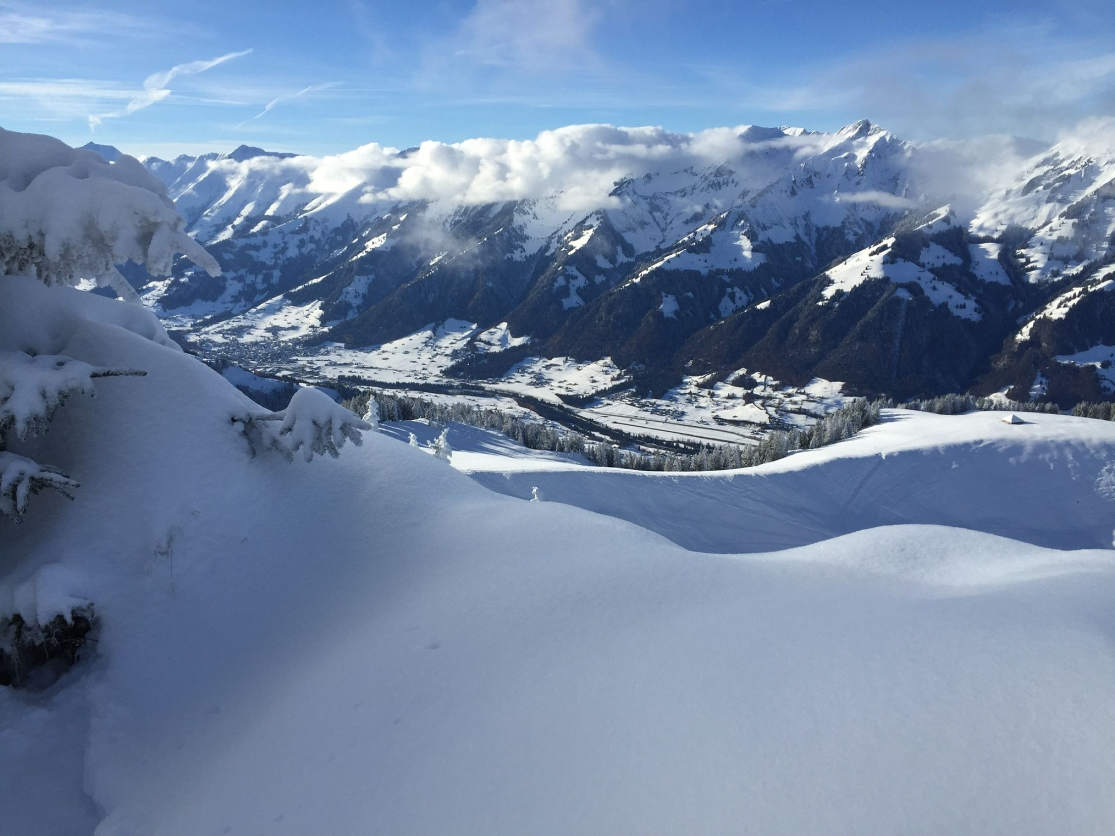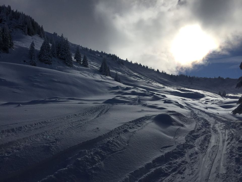 Start auf 900 m.ü.M. 20 cm Pulver, -3 Grad, sonniges Wetter. Musste nicht lange Spuren…später start um 11 Uhr. Auf ca 1300 ca 30 cm Schnee. Forststrasse durch Wald sehr gut eingeschneit. Oberhalb 1700 ca 40 cm . Ganz oben knapper halber Meter vor allem in Mulden. Gipfelhang mit altem Ski und umsichtiger Fahrweise gut machbar . Unten sicher auch knapp aber Grashänge und wenig Steine. Paar Kratzer erwischt….