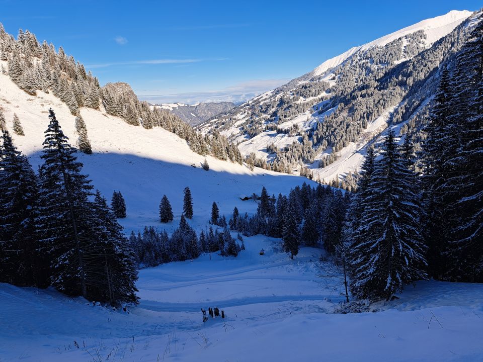 Eigentlich hätte es von Säge knapp genügend Schnee auf der Strasse gehabt,aber weil wir spät dran waren sind wir bis Ramse 1442m mit dem Auto hinaufgefahren.