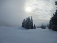 Ich bin erst nach halb 12 zur Tour aufgebrochen. Anders, als bei meiner gestrigen Schwarzwaldtour, waren die besseren Wetterphasen nämlich heute für den Nachmittag prophezeiht. So war´s denn auch zunächst recht sonnig, bis es oberhalb der Stotzweid in eine Wolke hineinging. Der Nebel blieb oben erhalten, auch wenn die Sonne dort tapfer am kämpfen war. Mag sein, dass es nach Verlassen des Gipfels dort zumindest zeitenweise noch aufgemacht hat. Sonnig wurde es für mich im Abstieg nach dem Chüebodenegg, sehr schöne winterliche Spätnachmittagsstimmung.