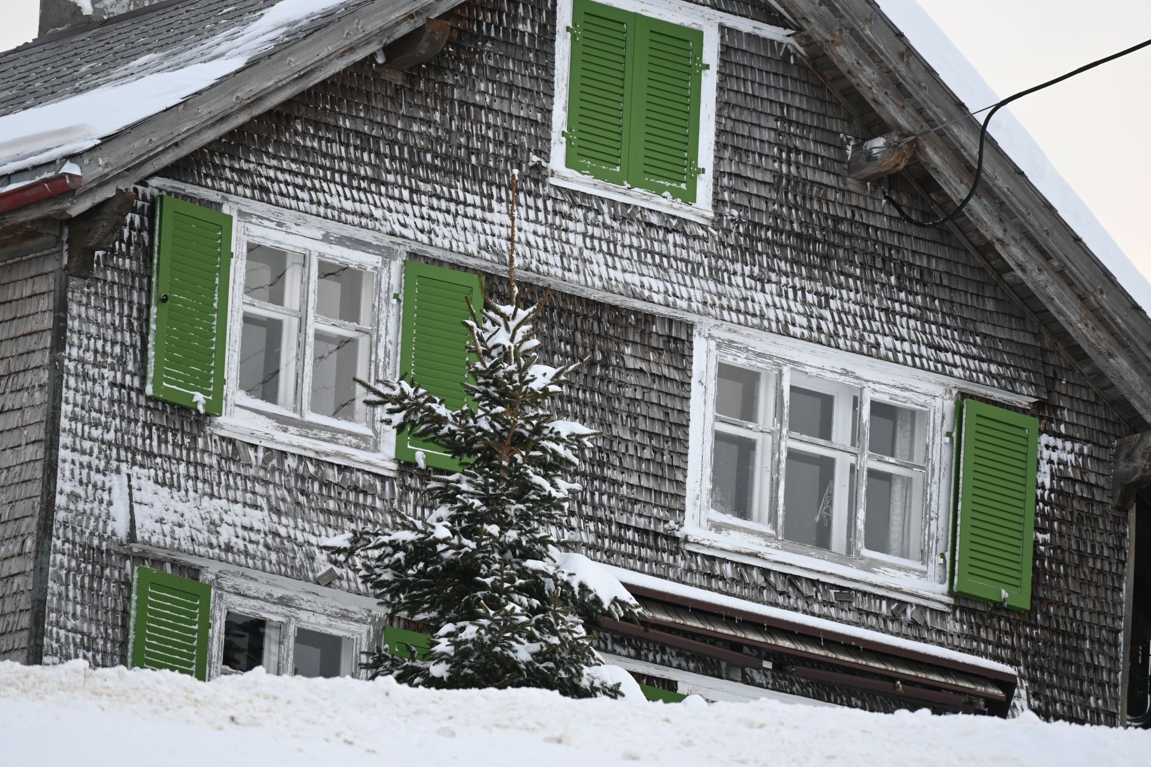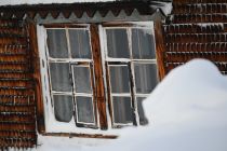 Unten bis ca. Mitte 10-15cm Pulver auf einem Regendeckel, darüber gut 30-50cm Pulver, an manchen Stellen etwas abgeblasen
