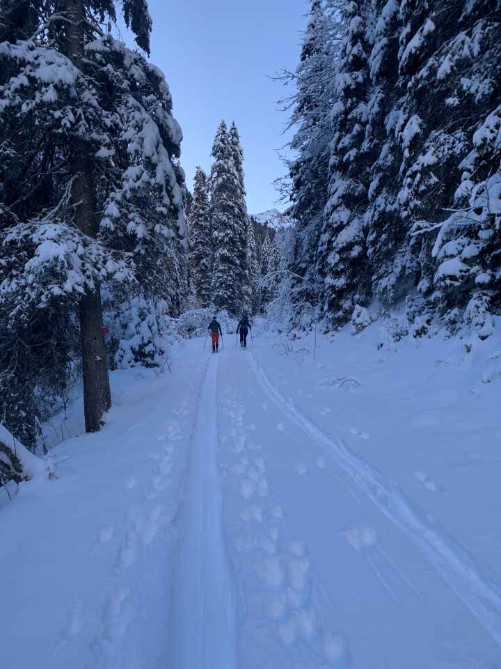 Nur "gut" statt "ausgezeichnet" wegen der doch noch geringen Schneemenge v.a. im Boden kurz nach der Alphütte, die Bäche und Wasser-/Schlammlöcher sind noch offen.